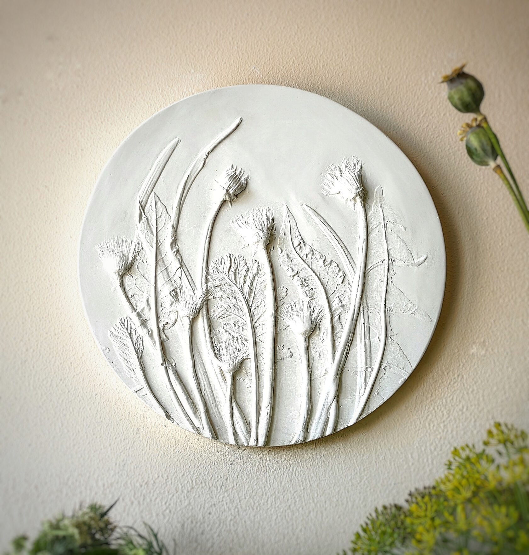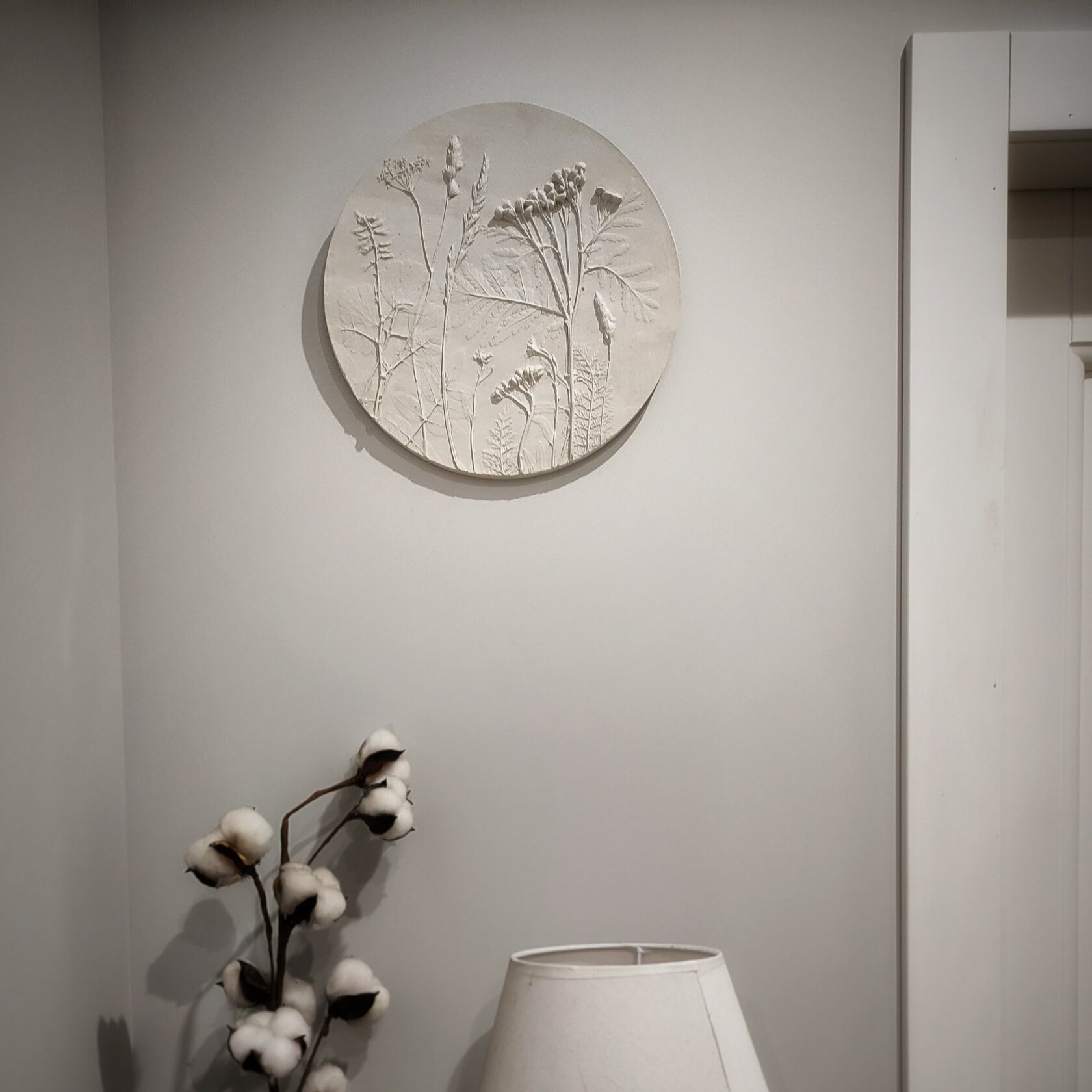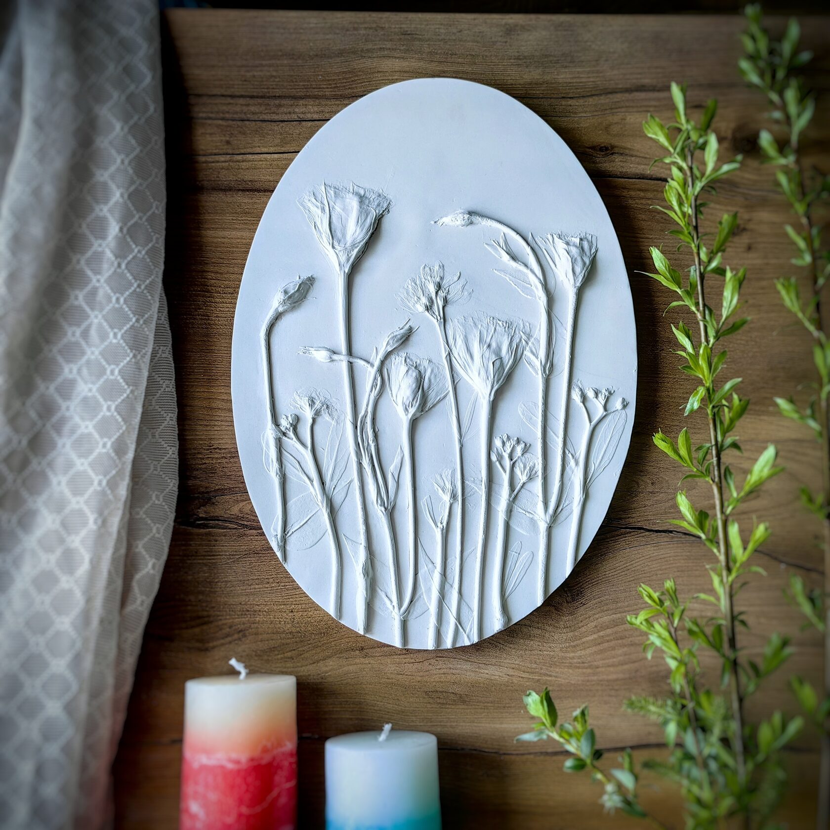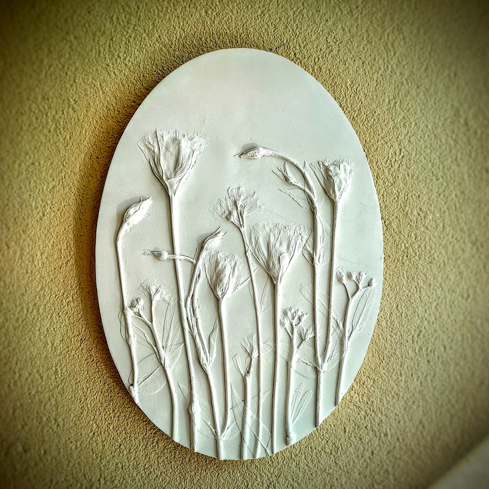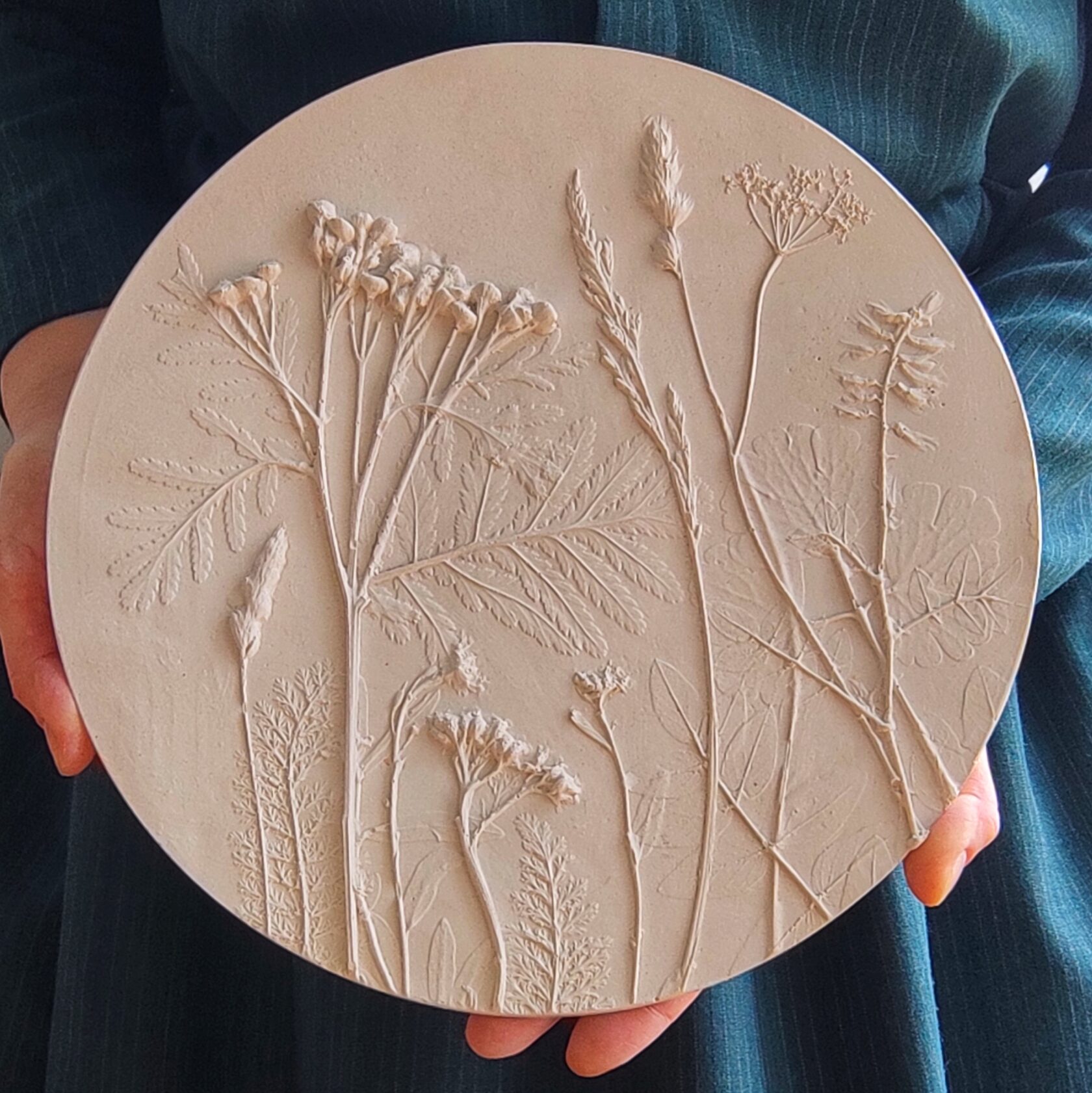 В работе мы используем живые цветы, натуральную цветную глину и высокопрочный гипс. Каждое изделие изготовлено с большой любовью к процессу и уважением к будущему обладателю панно.