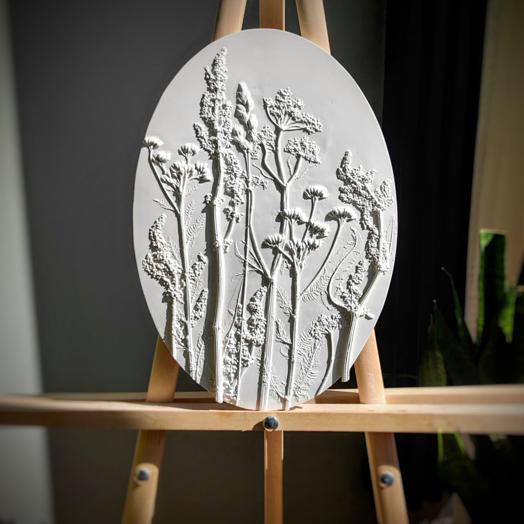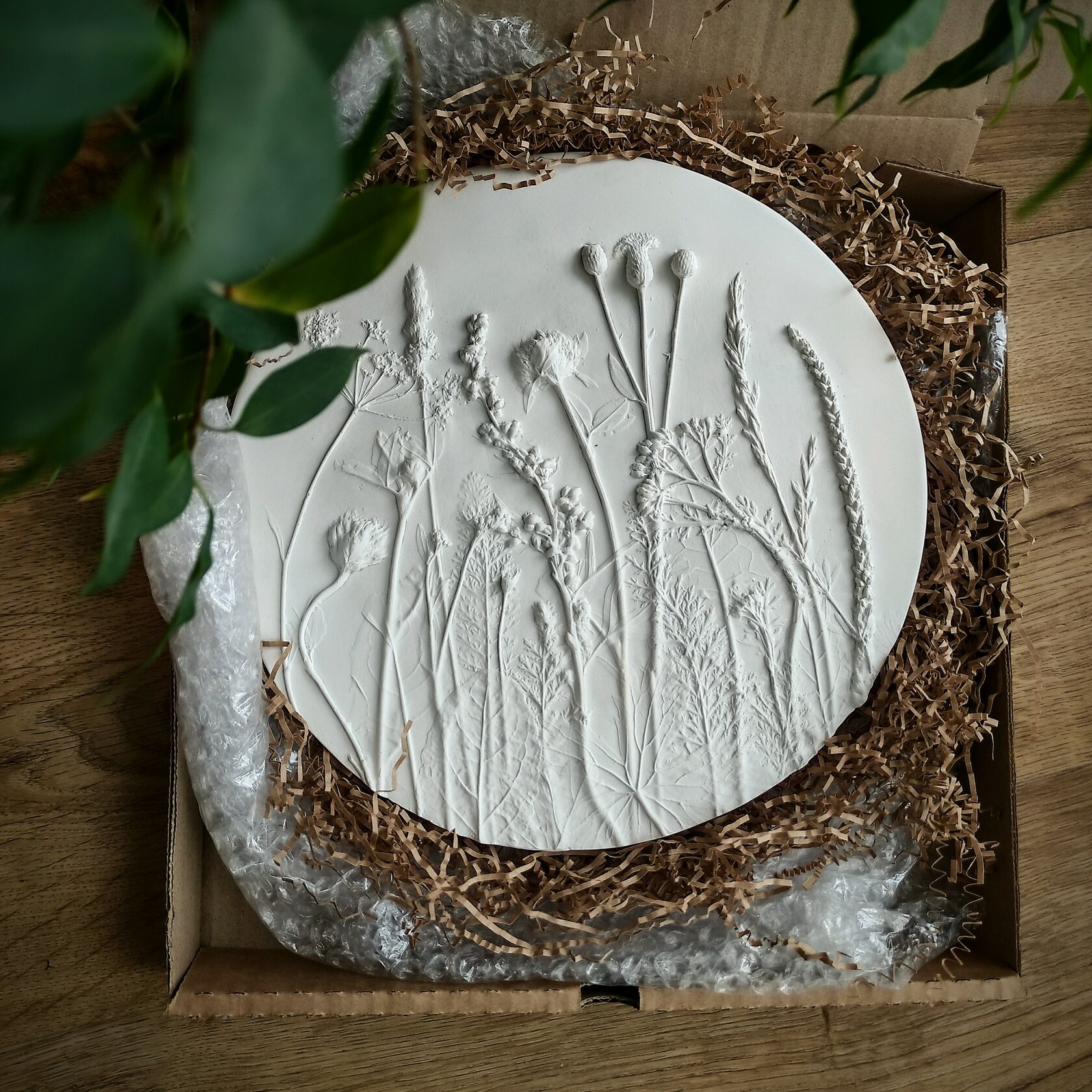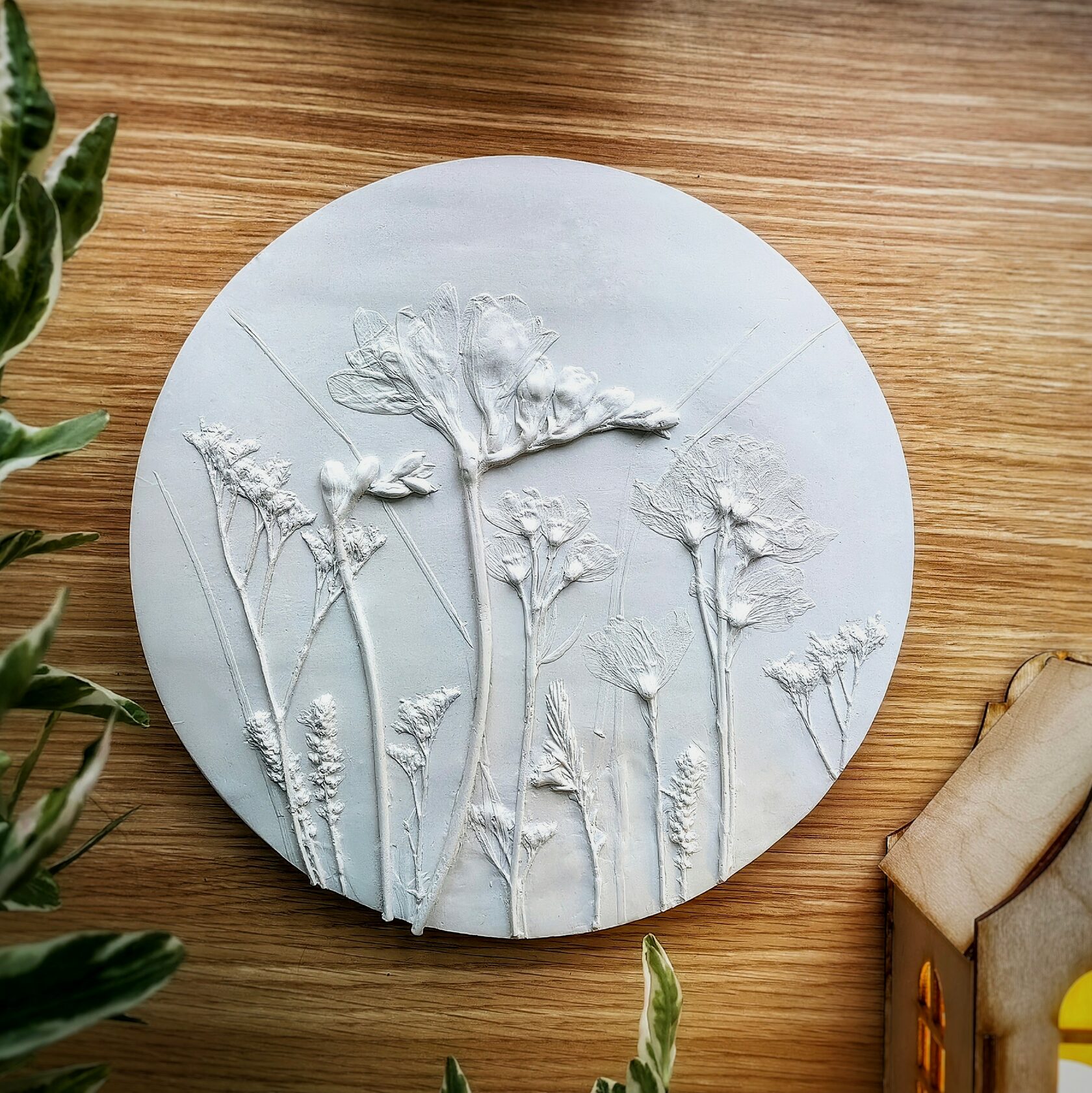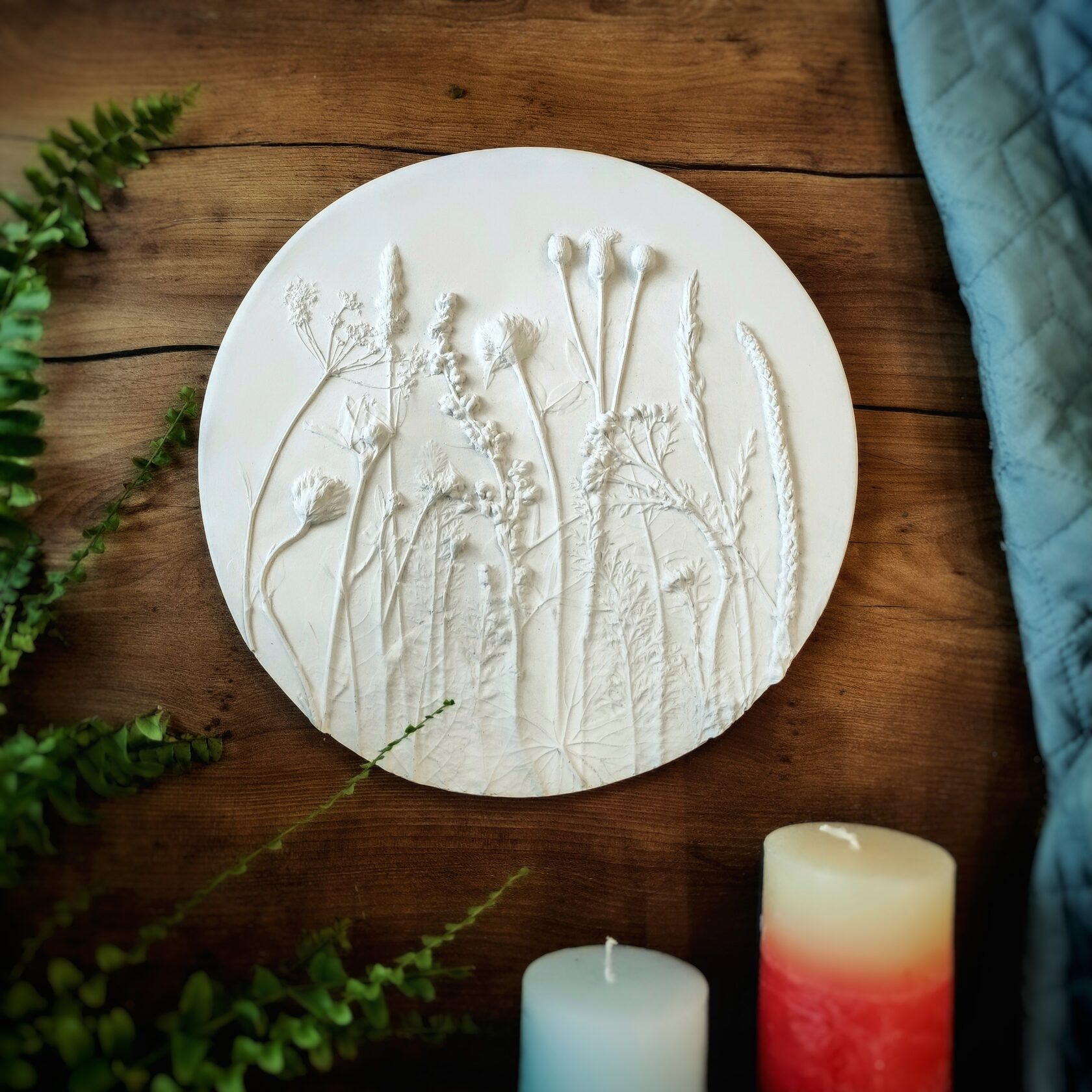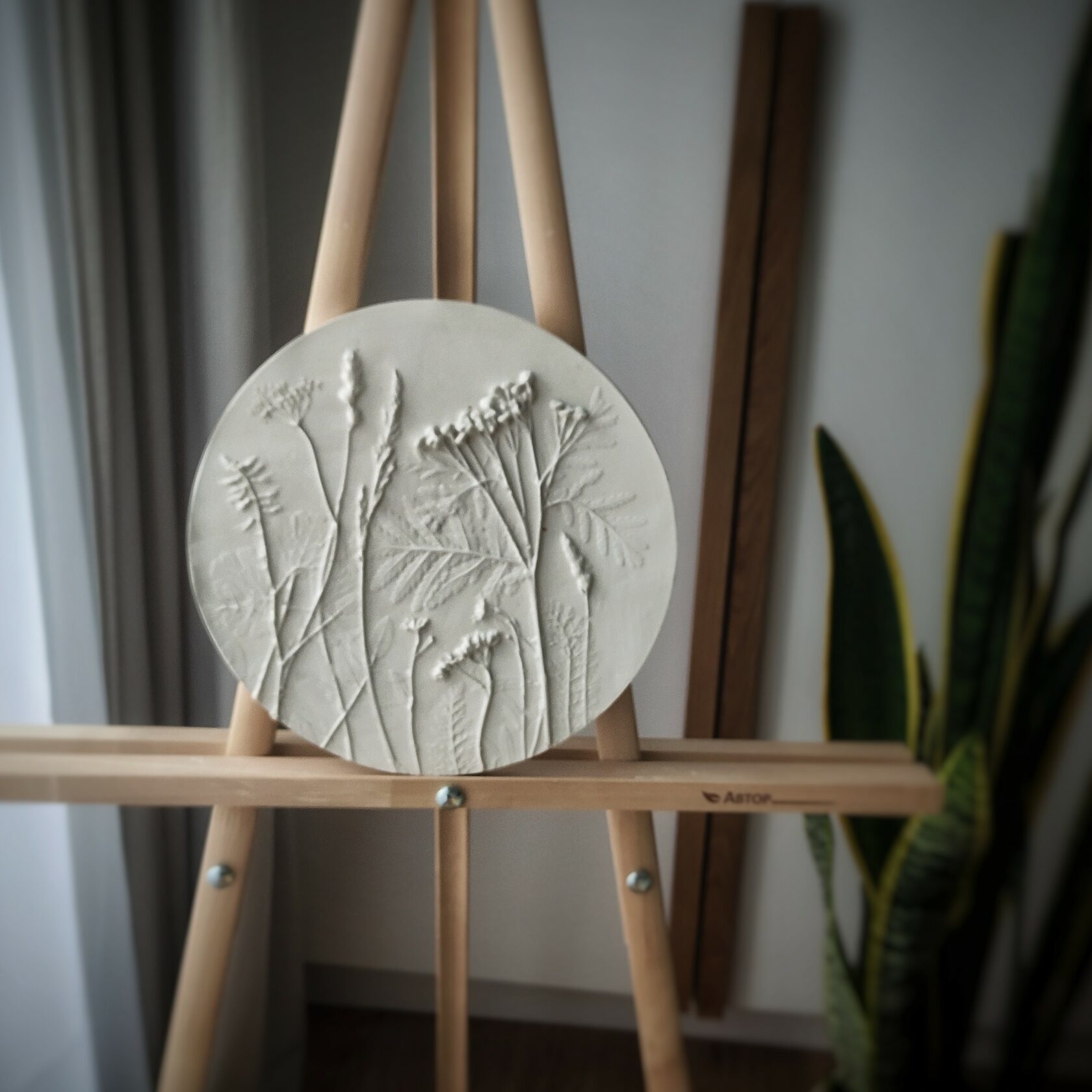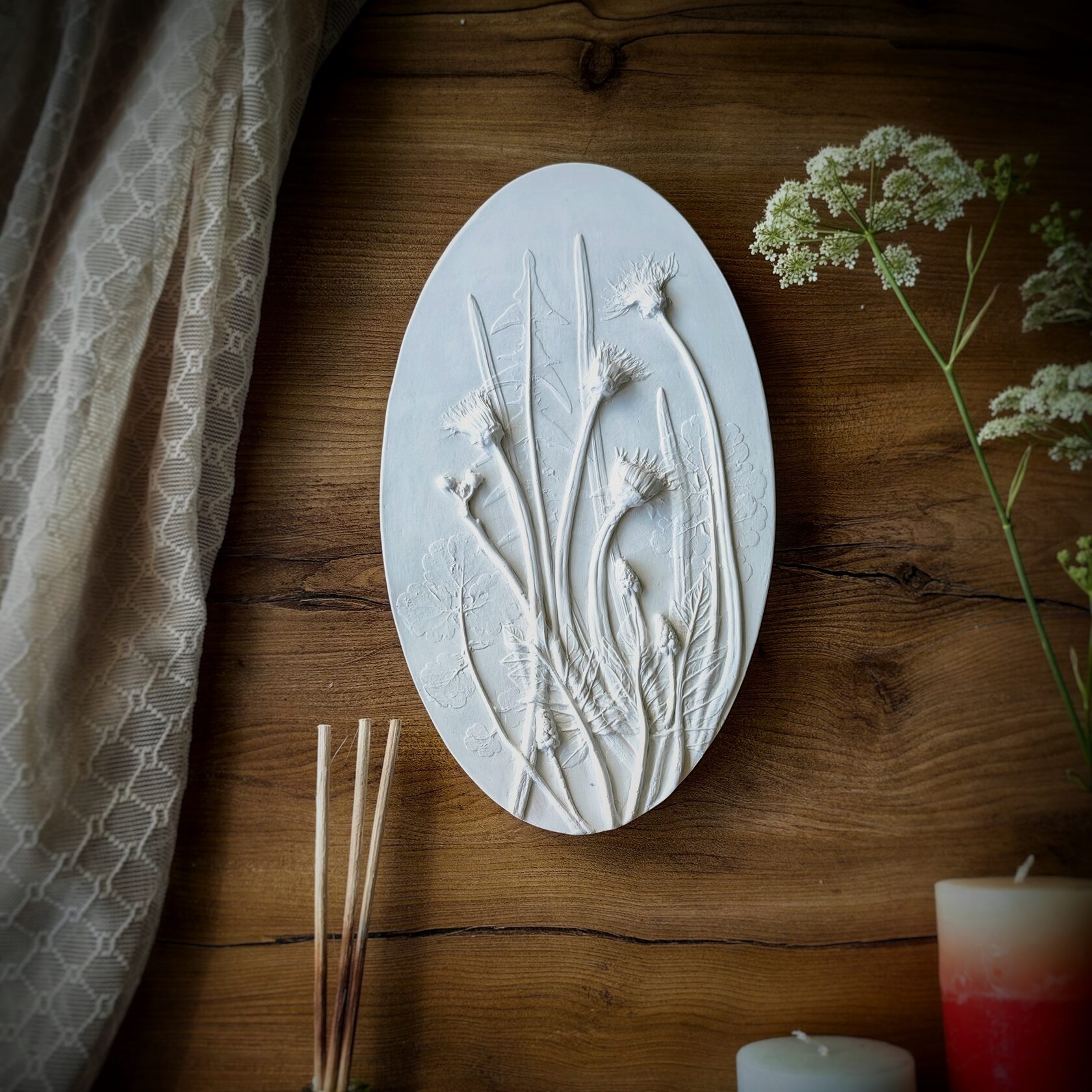 В работе мы используем живые цветы, натуральную цветную глину и высокопрочный гипс. Каждое изделие изготовлено с большой любовью к процессу и уважением к будущему обладателю панно.