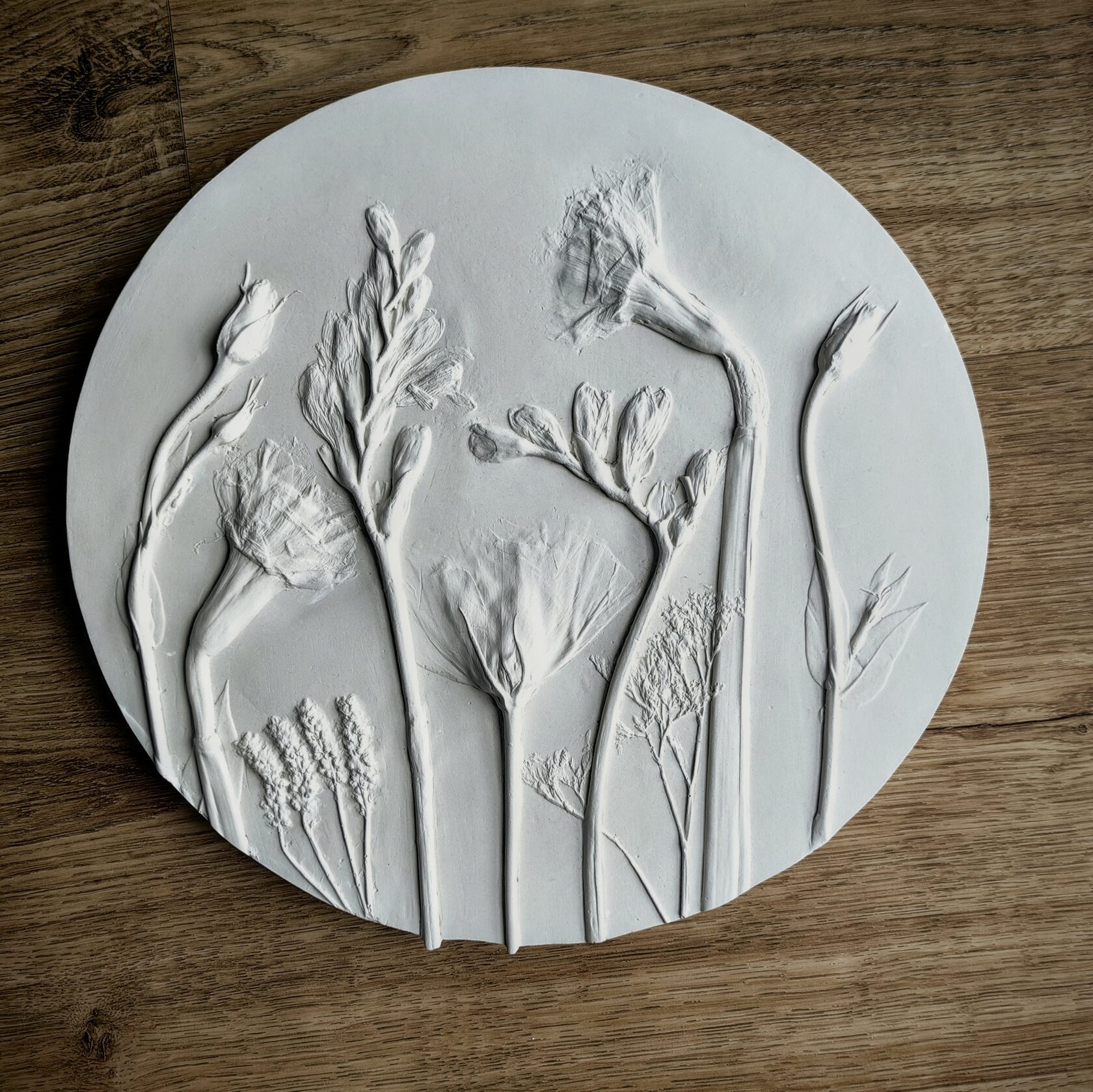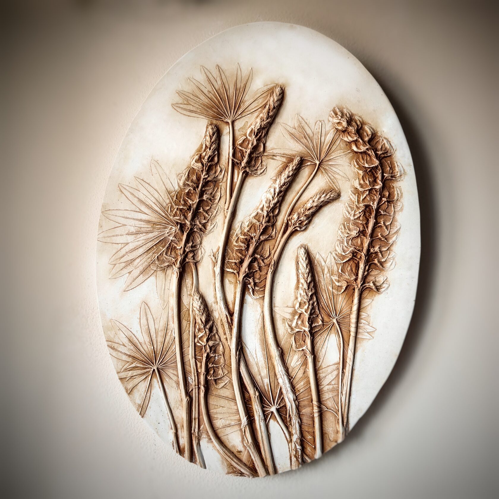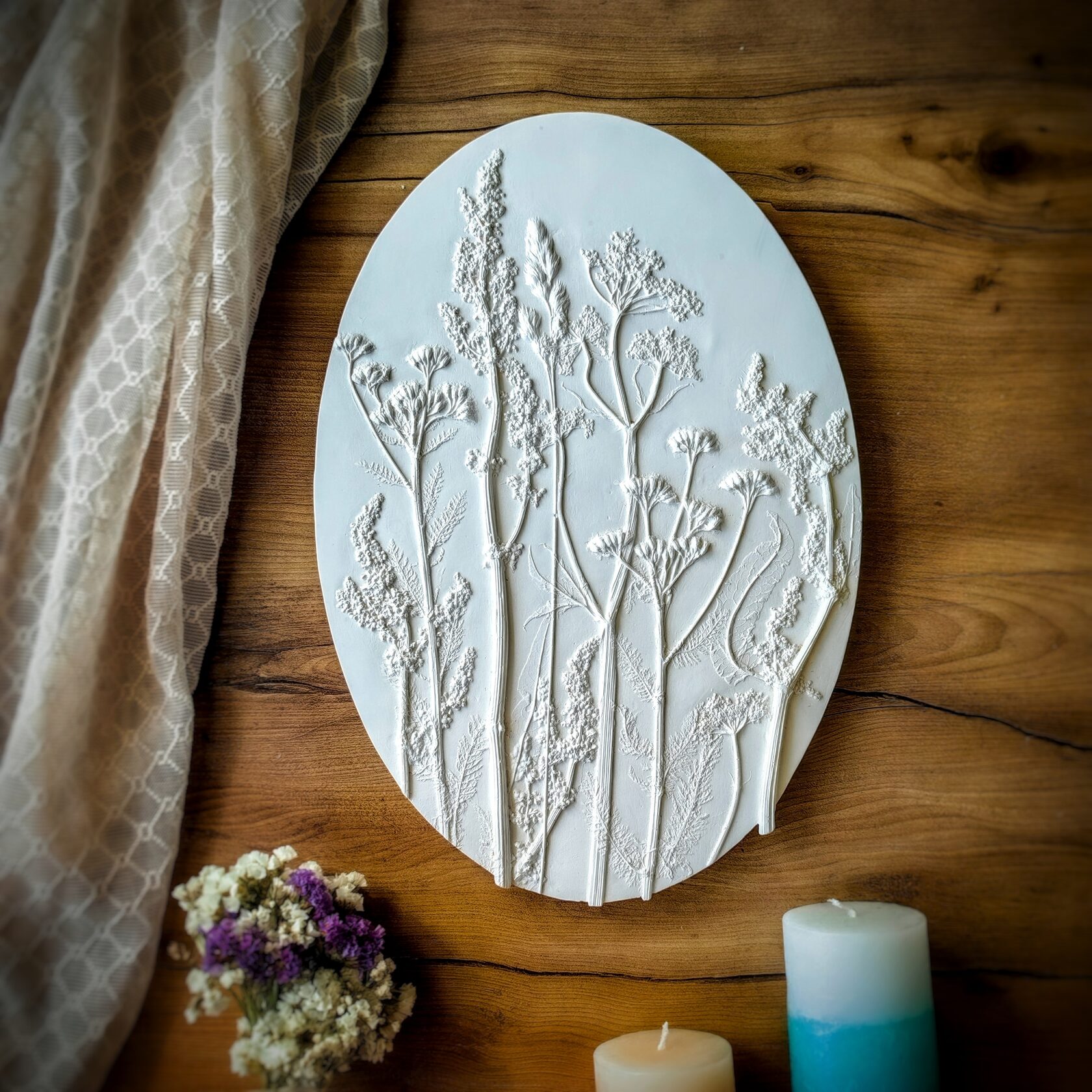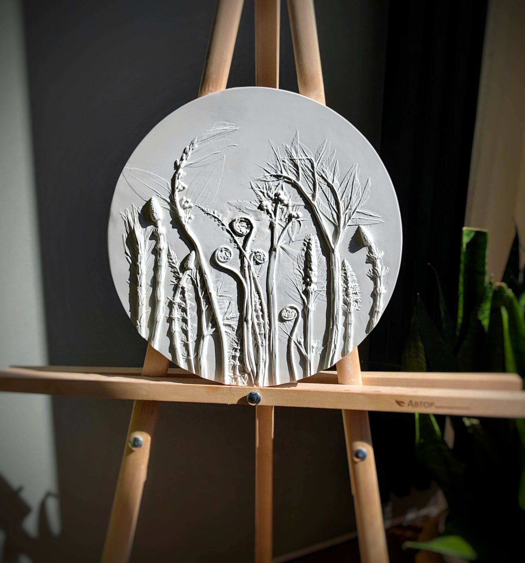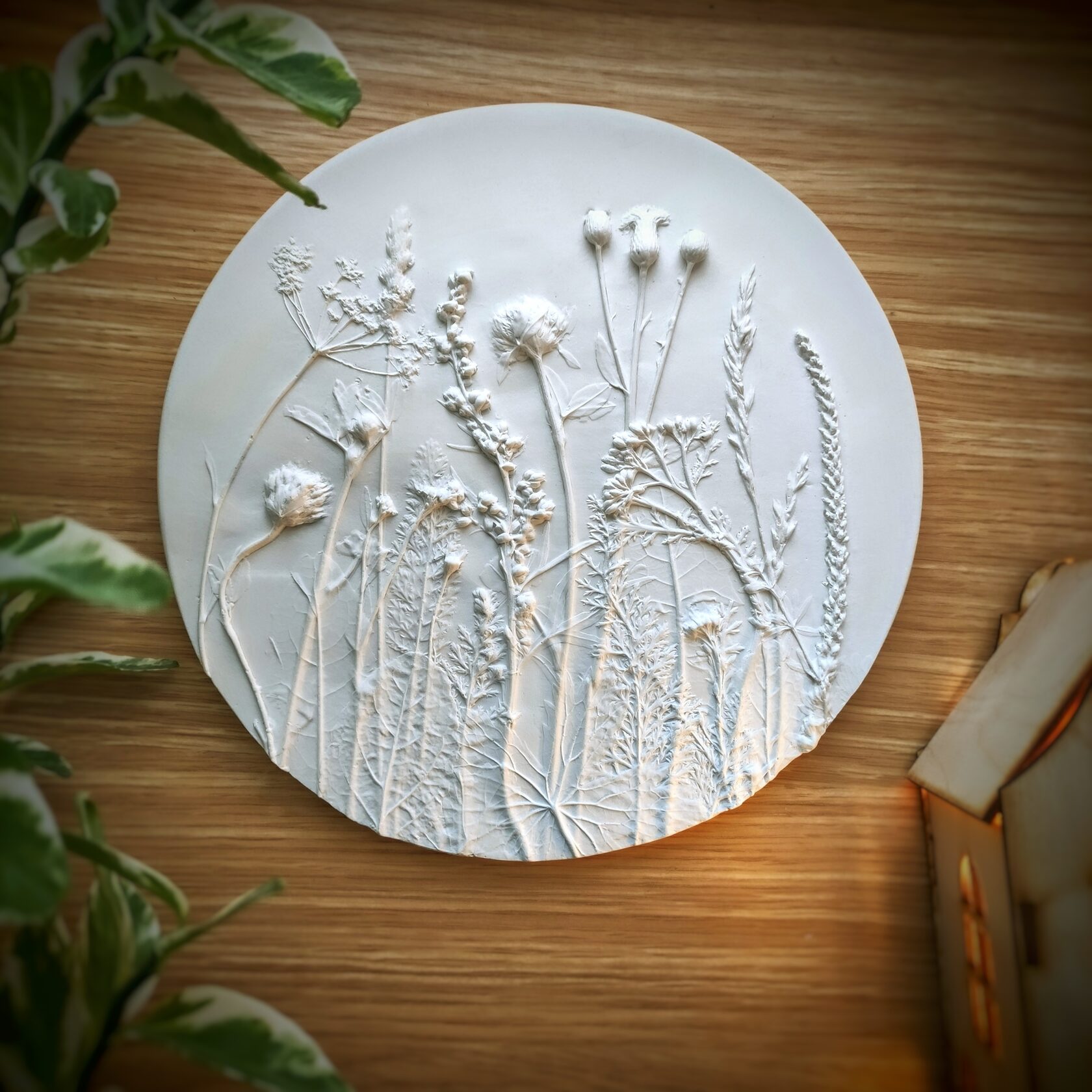 В работе мы используем живые цветы, натуральную цветную глину и высокопрочный гипс. Каждое изделие изготовлено с большой любовью к процессу и уважением к будущему обладателю панно.