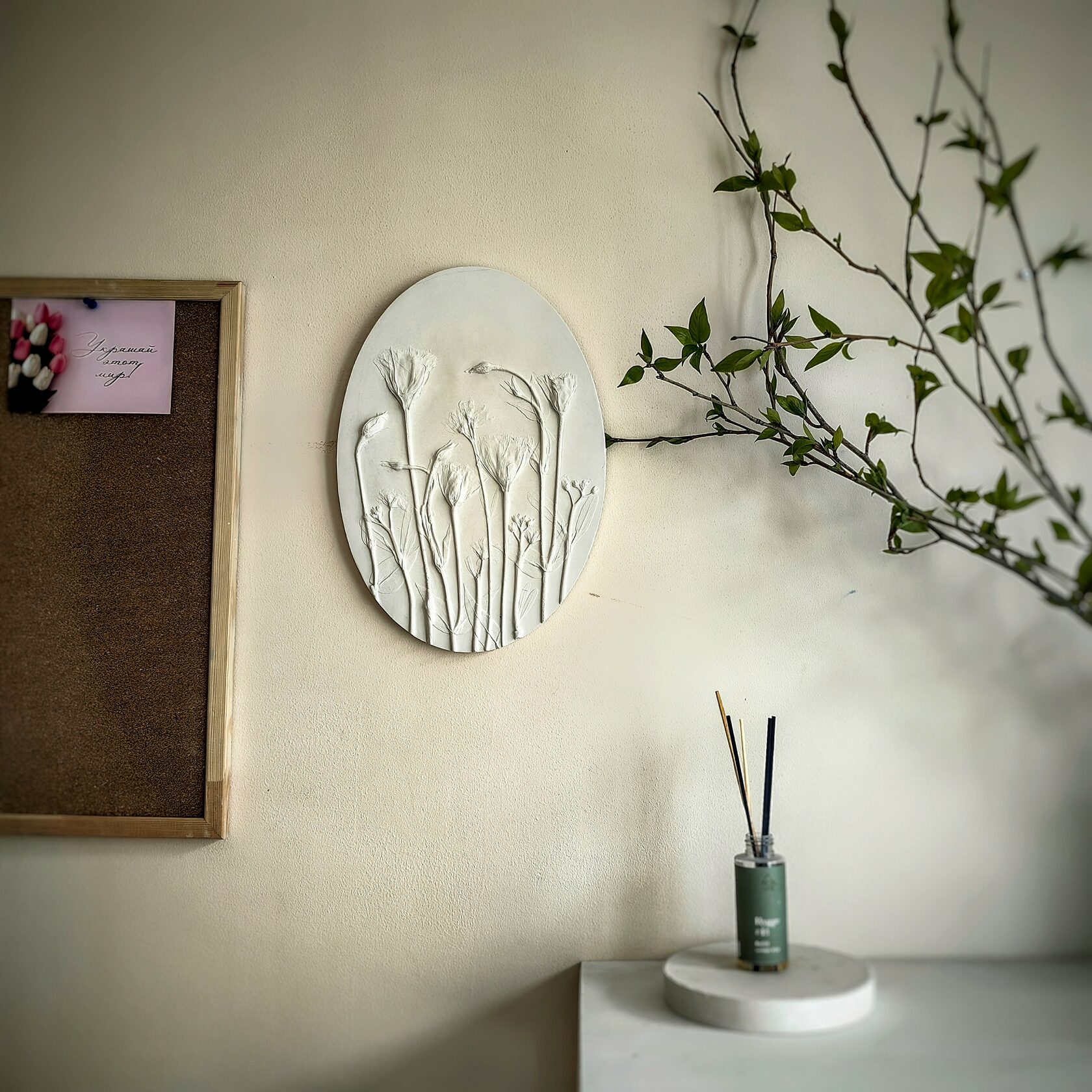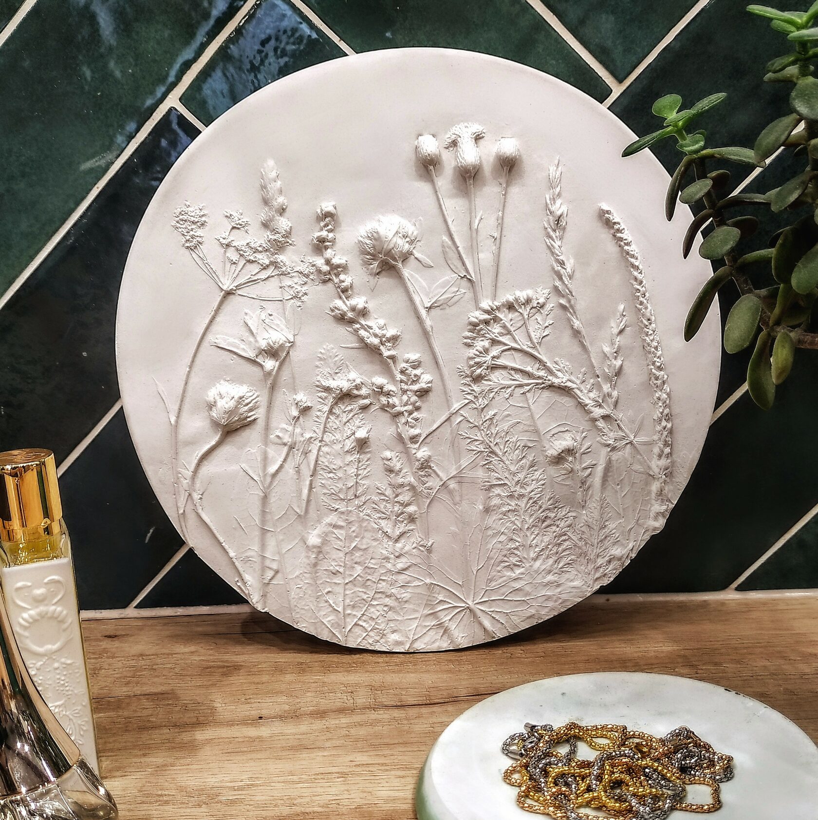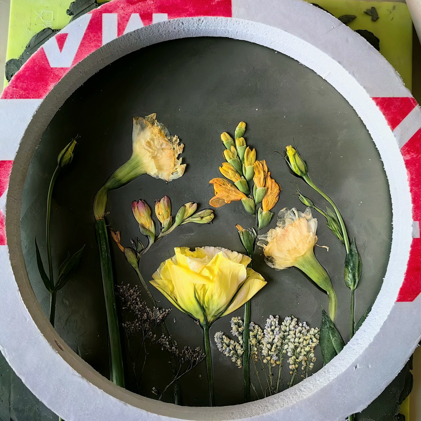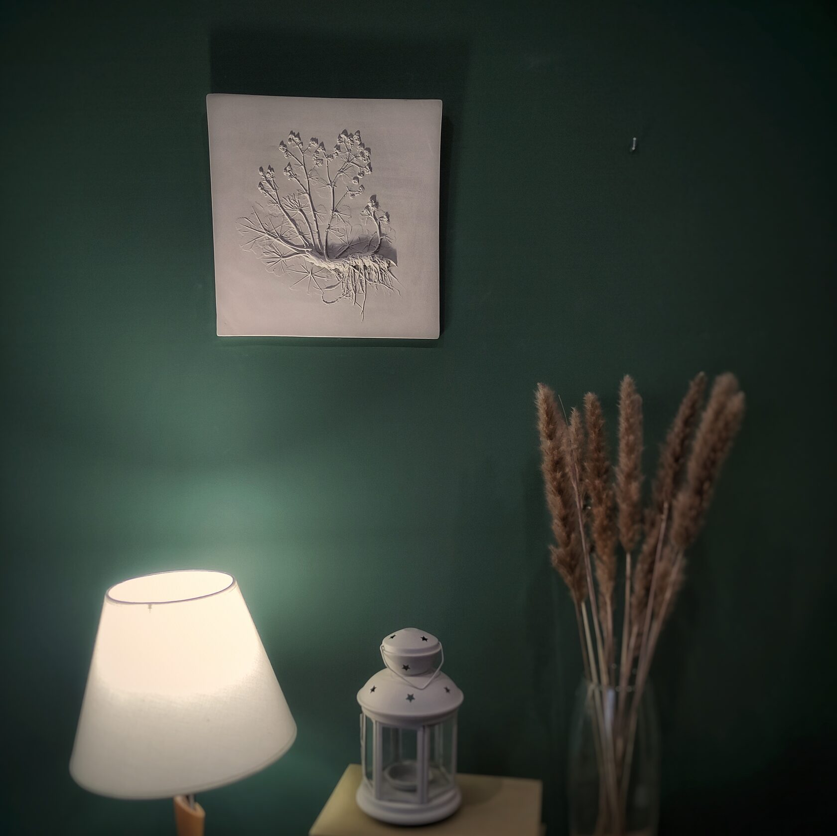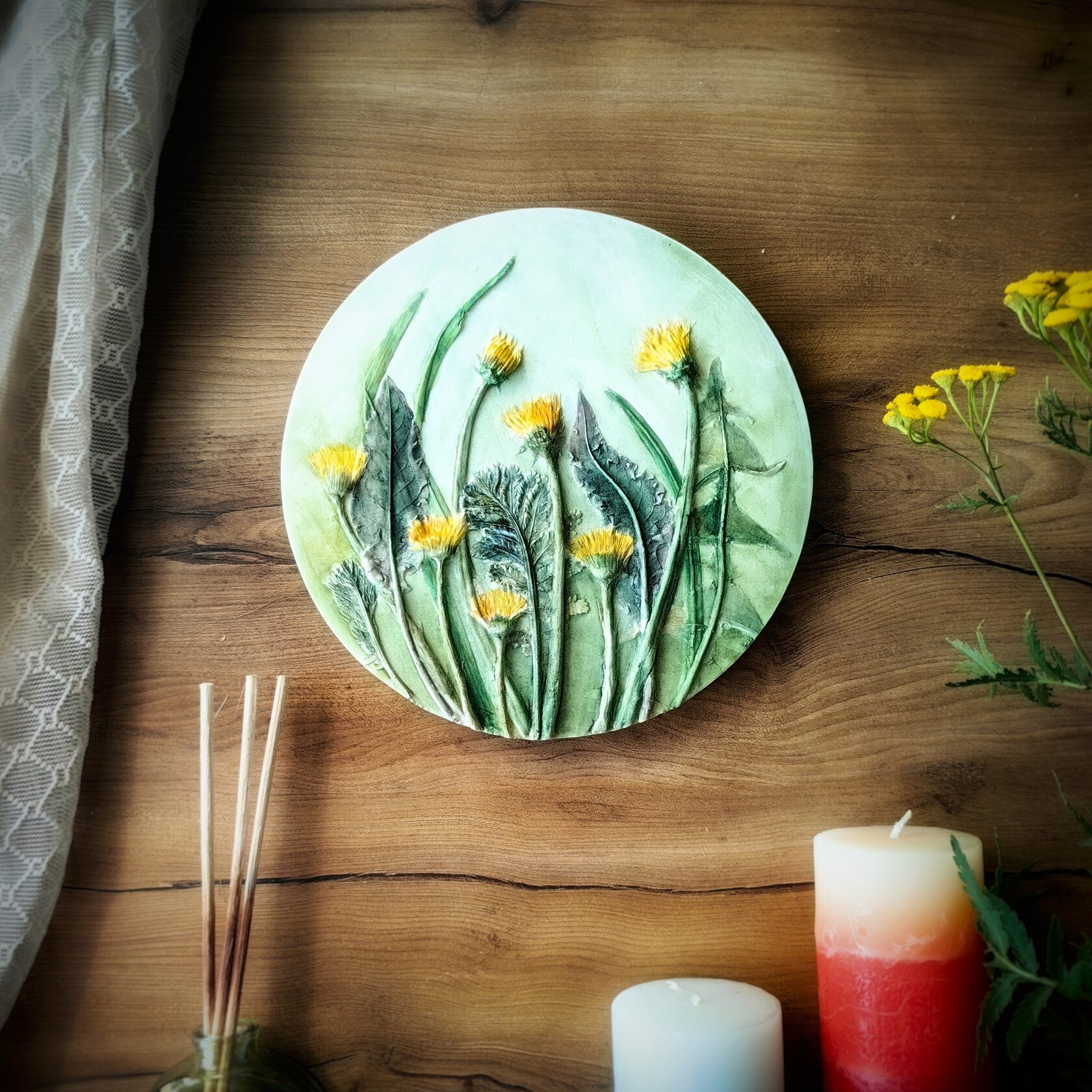 В работе мы используем живые цветы, натуральную цветную глину и высокопрочный гипс. Каждое изделие изготовлено с большой любовью к процессу и уважением к будущему обладателю панно.