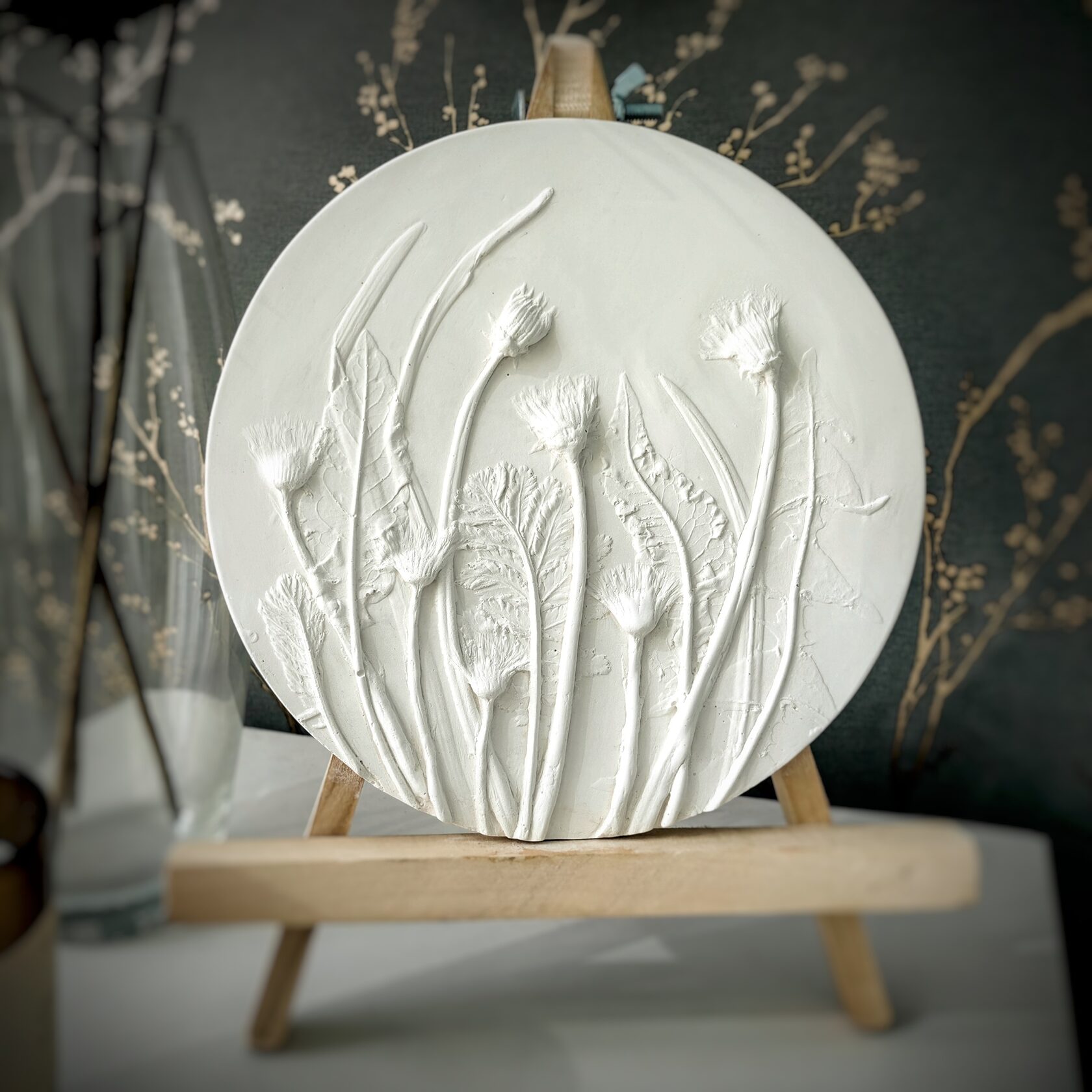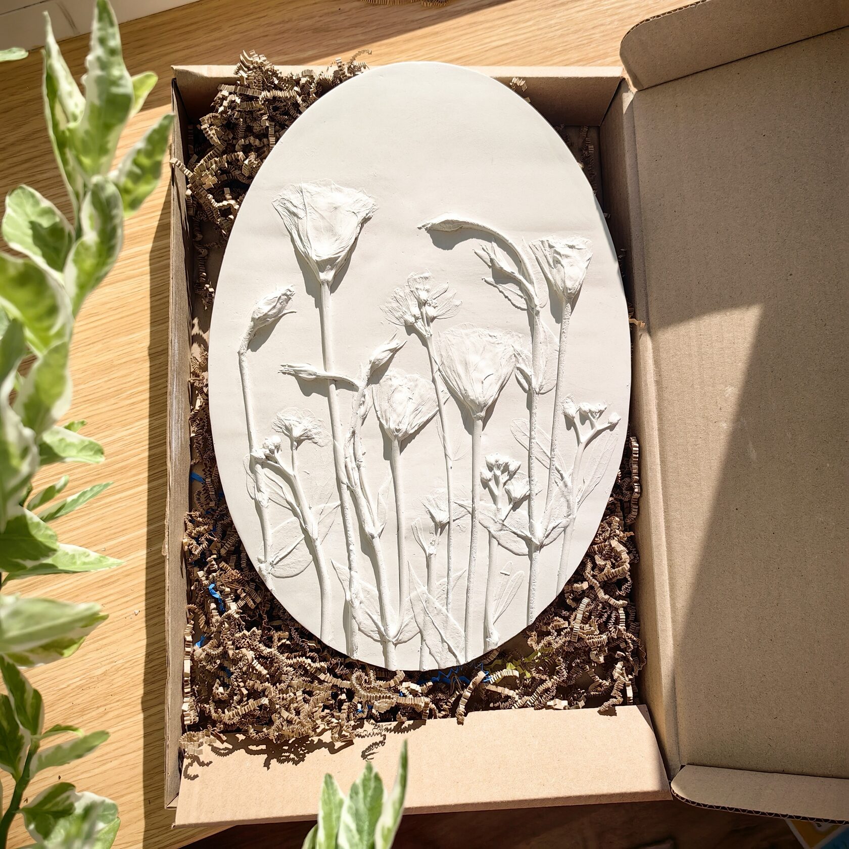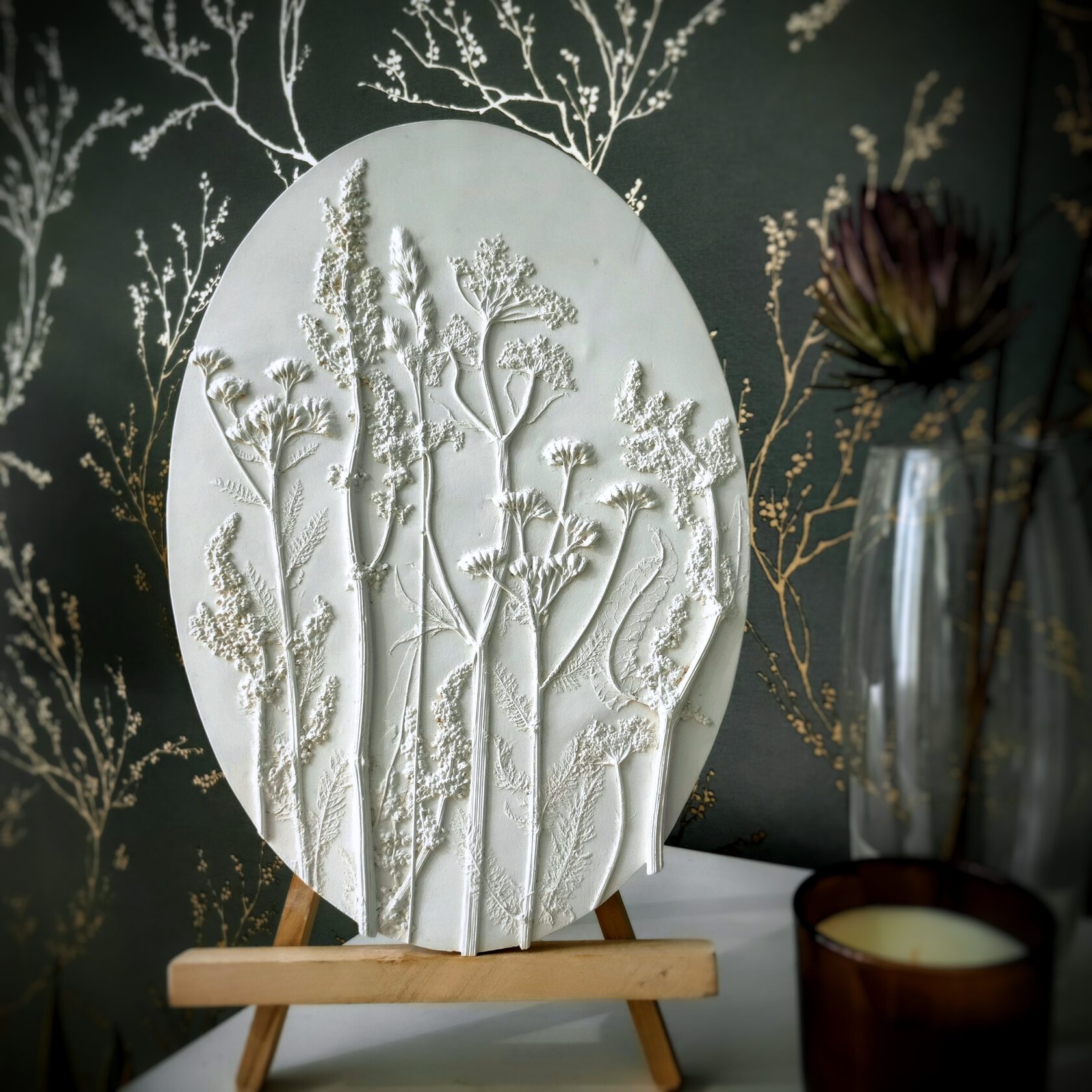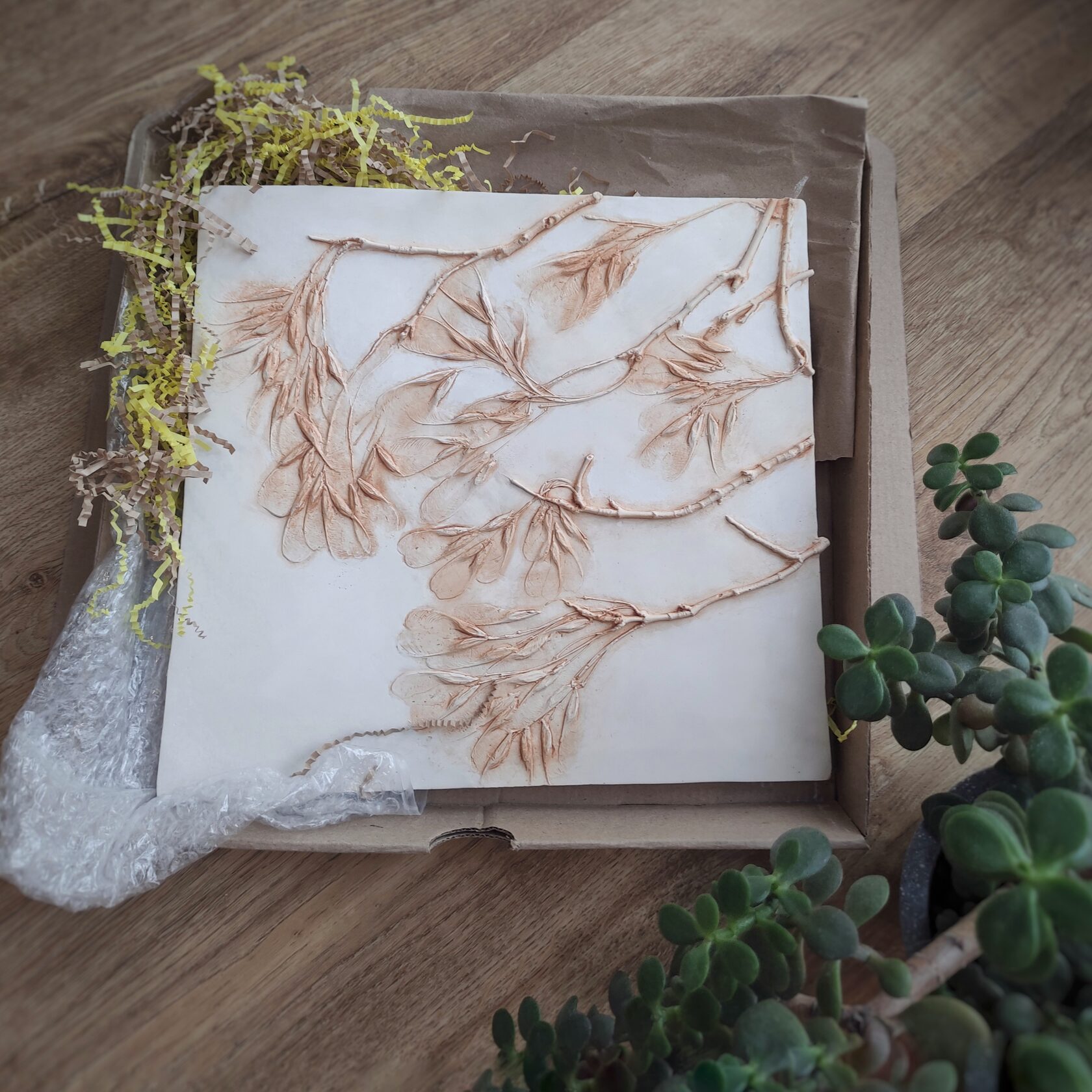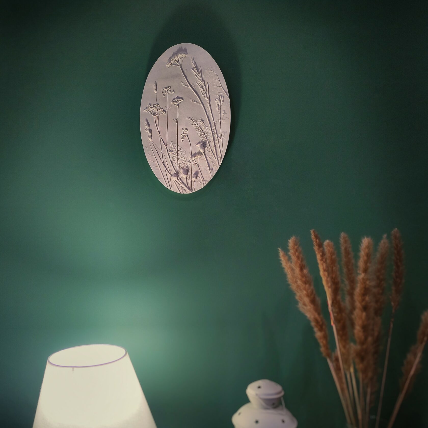 В работе мы используем живые цветы, натуральную цветную глину и высокопрочный гипс. Каждое изделие изготовлено с большой любовью к процессу и уважением к будущему обладателю панно.