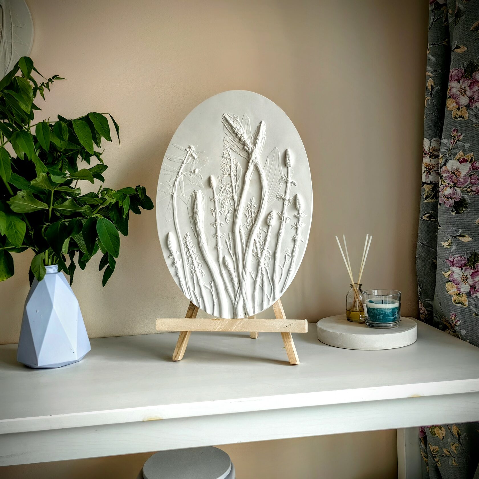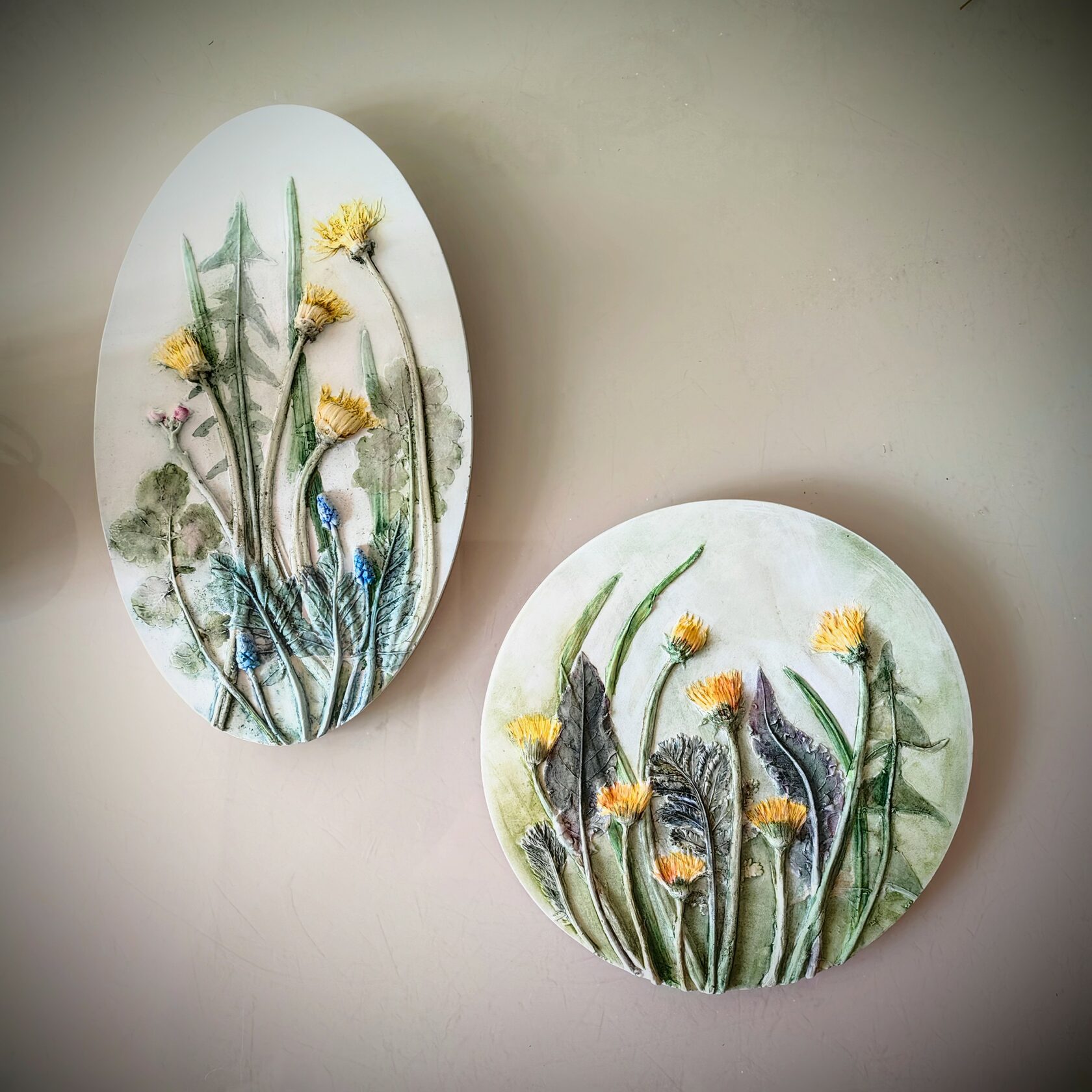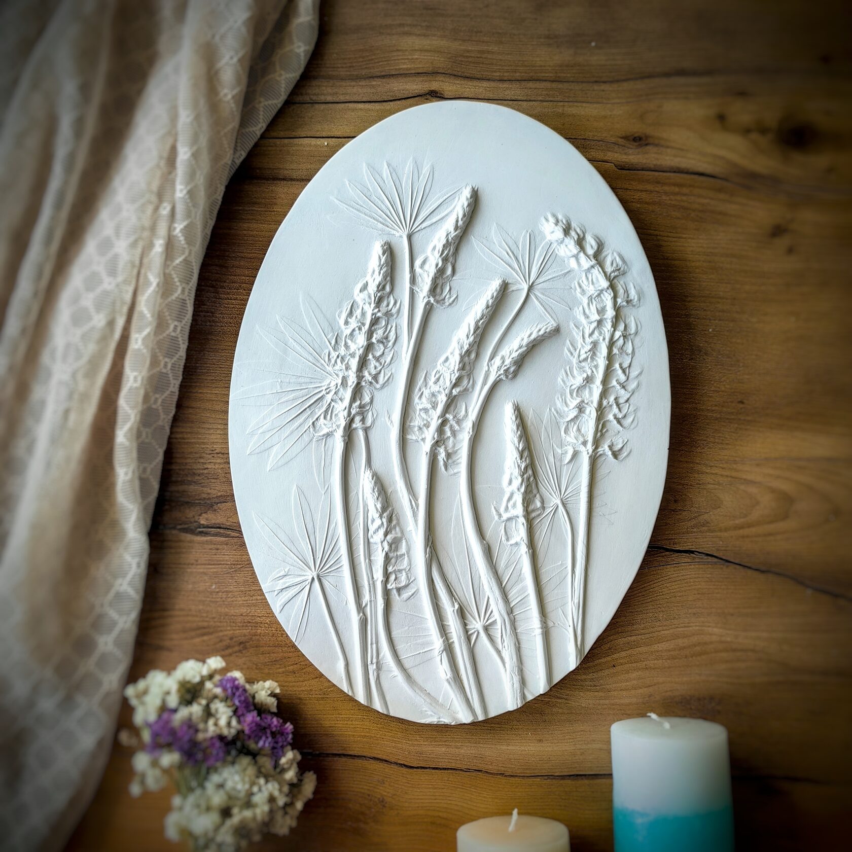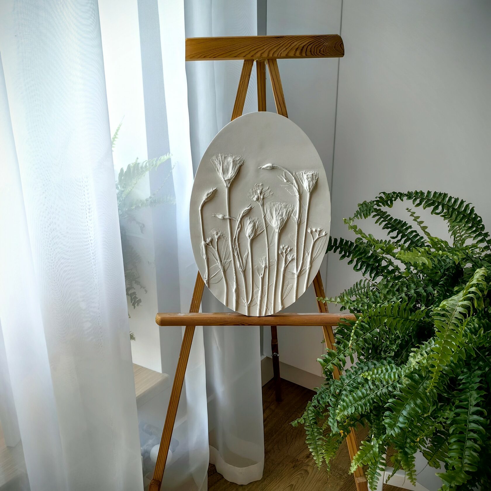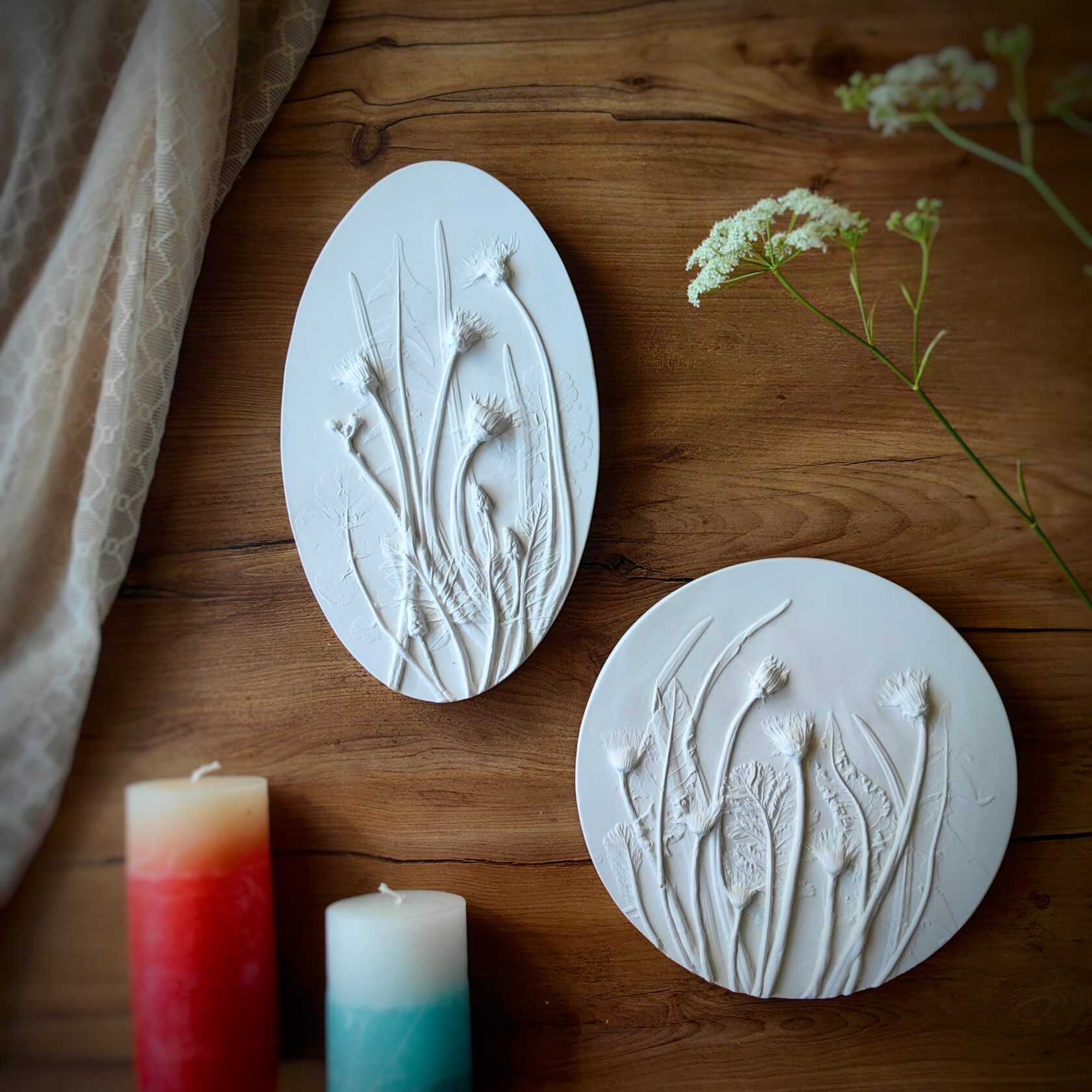 В работе мы используем живые цветы, натуральную цветную глину и высокопрочный гипс. Каждое изделие изготовлено с большой любовью к процессу и уважением к будущему обладателю панно.