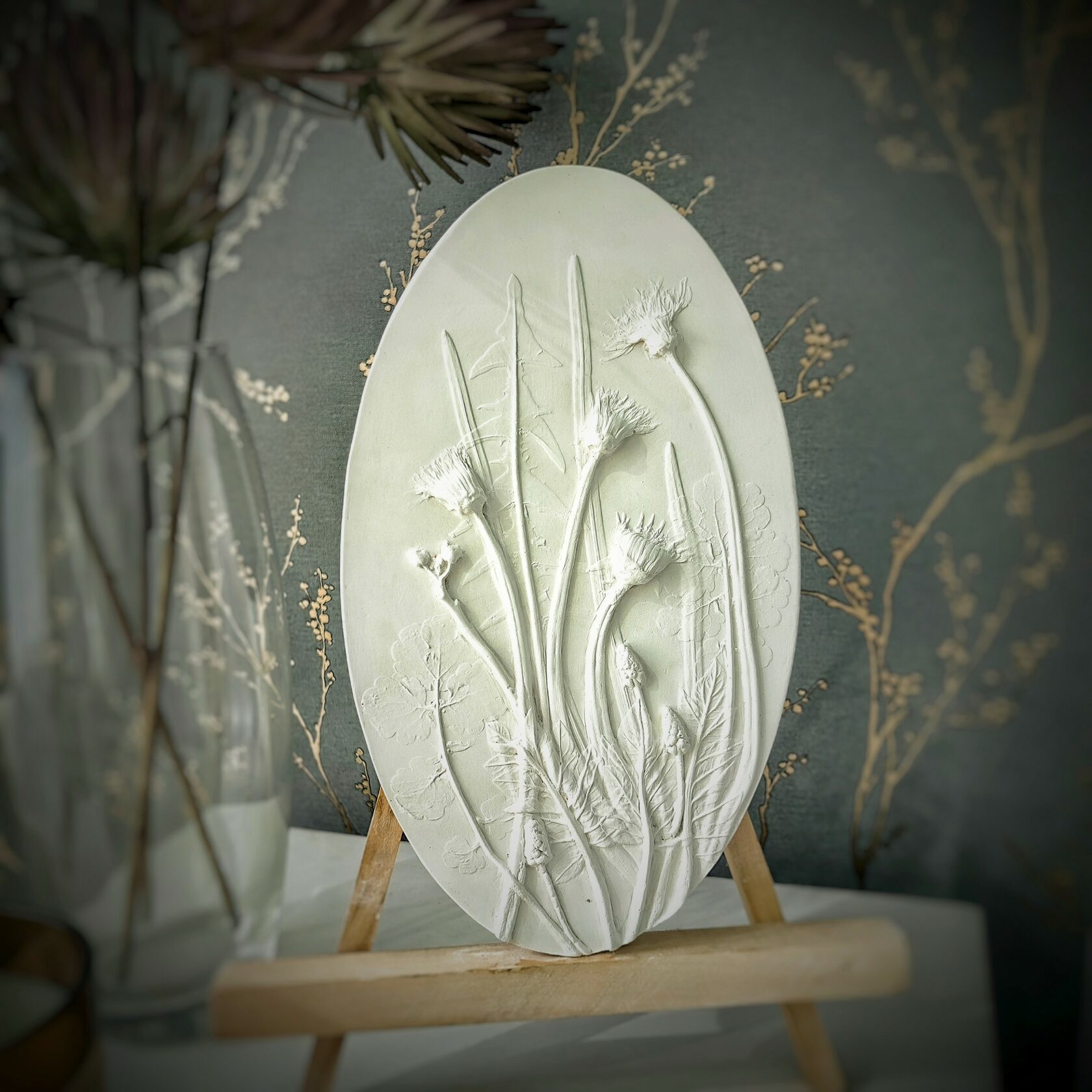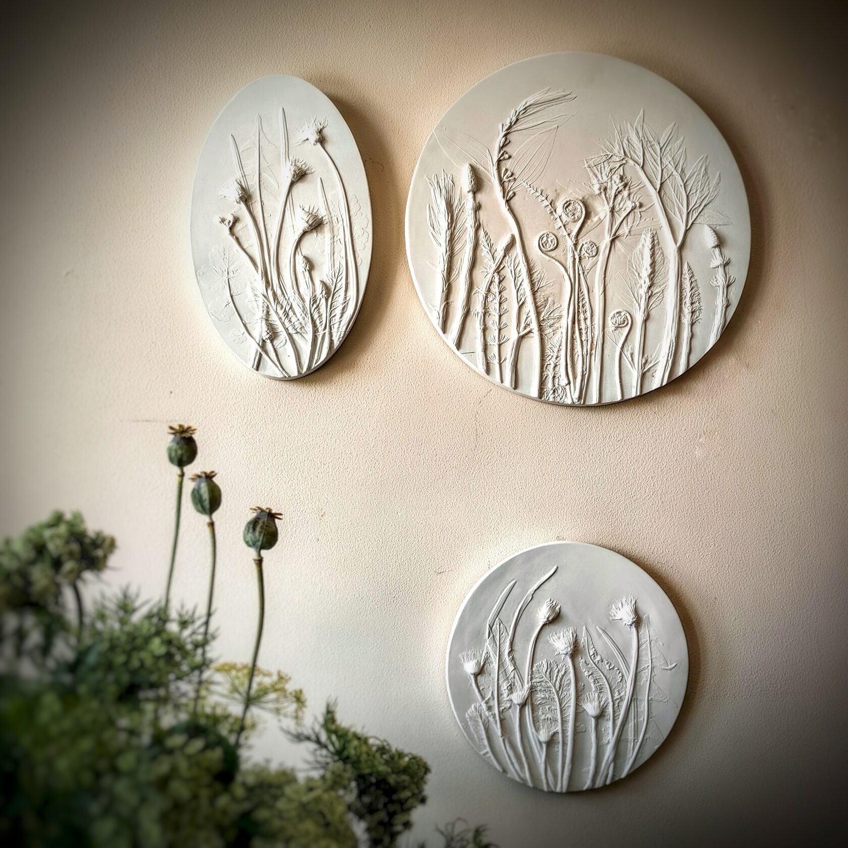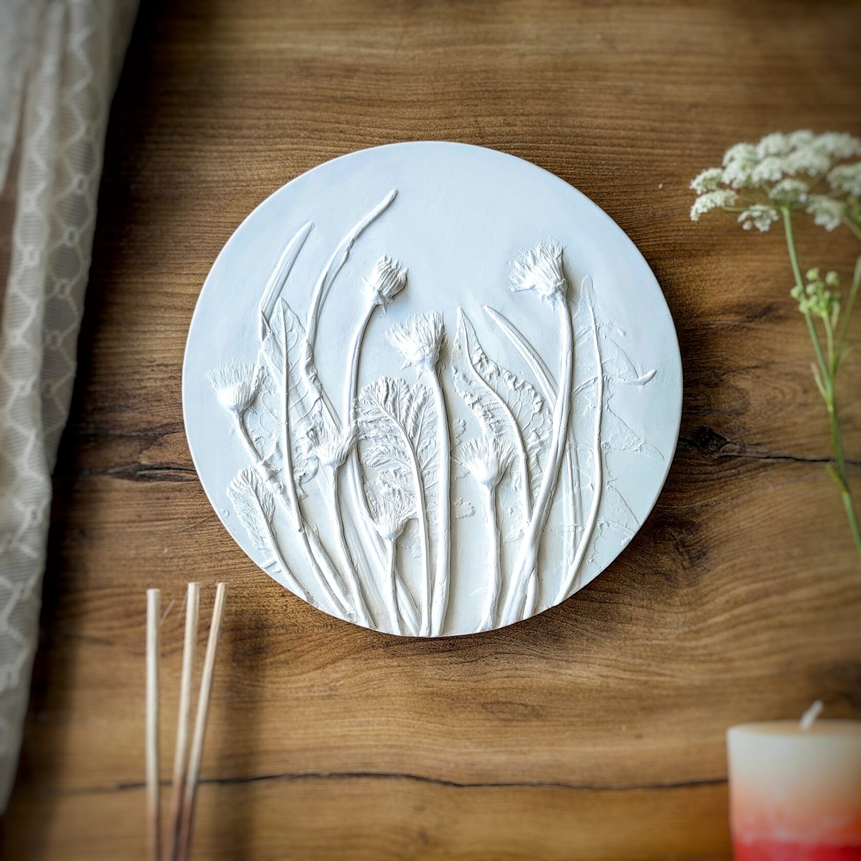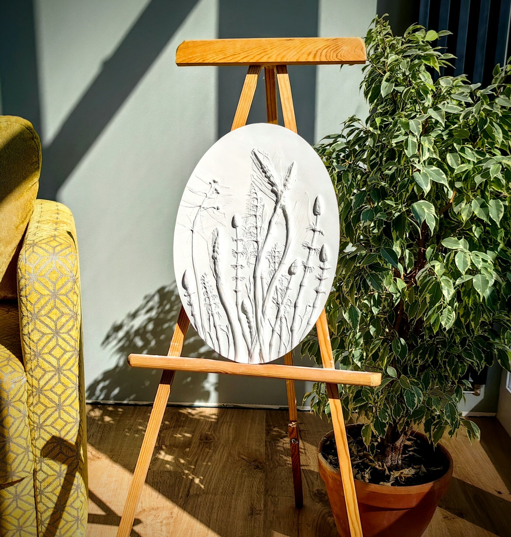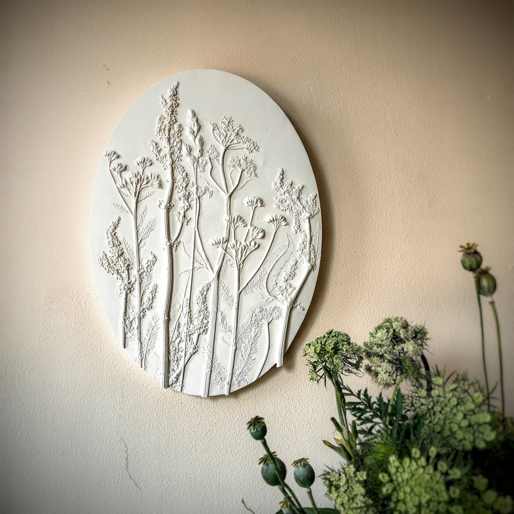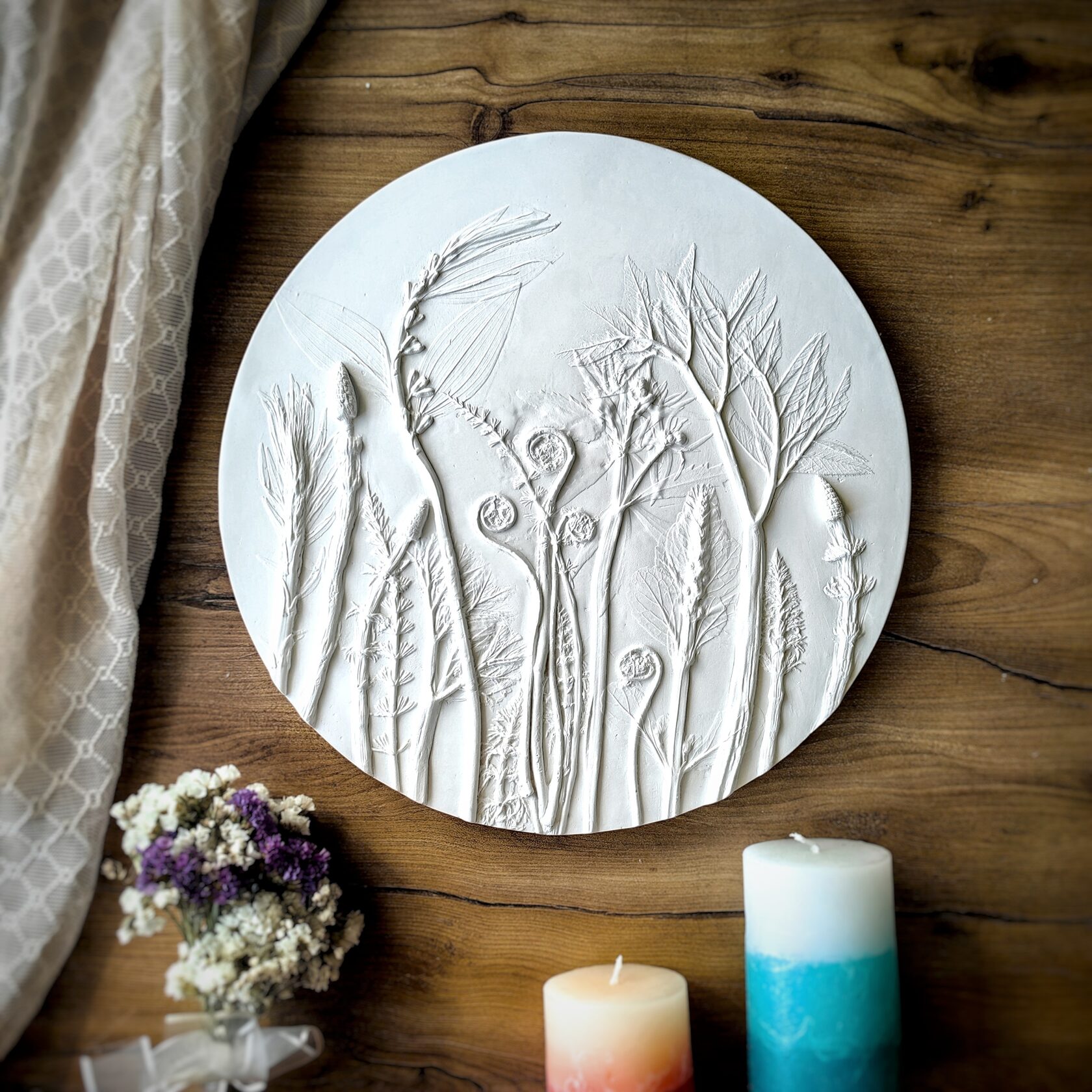 В работе мы используем живые цветы, натуральную цветную глину и высокопрочный гипс. Каждое изделие изготовлено с большой любовью к процессу и уважением к будущему обладателю панно.