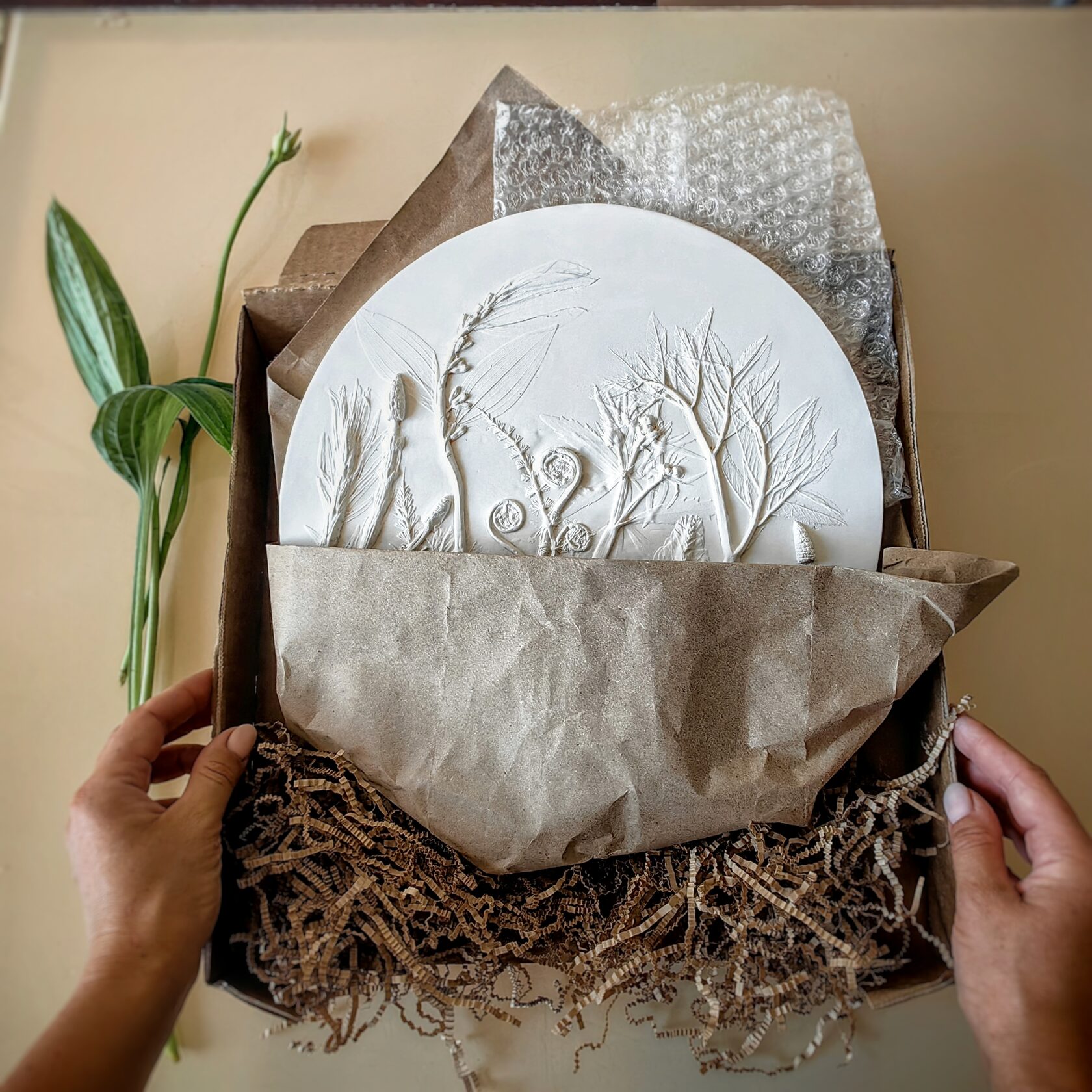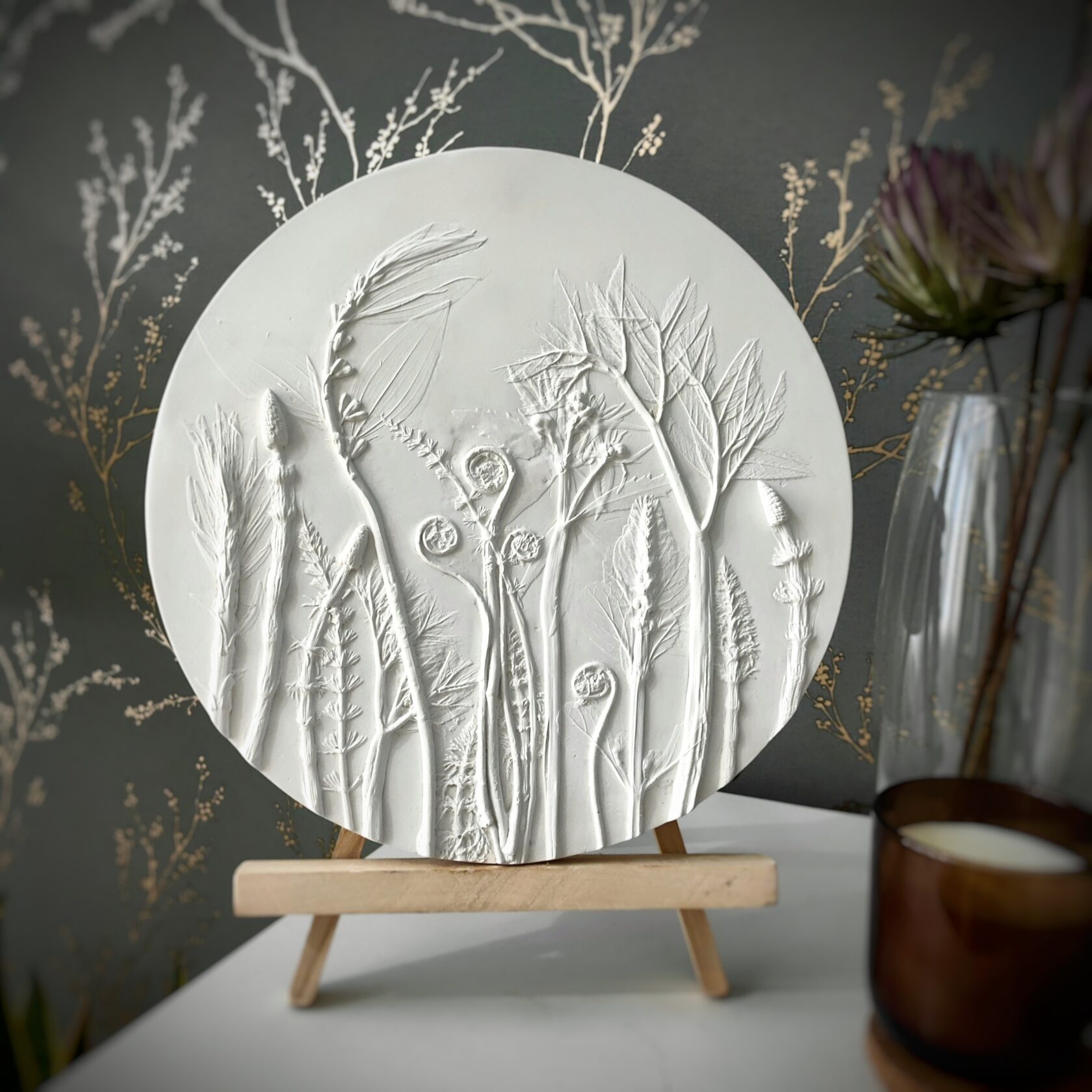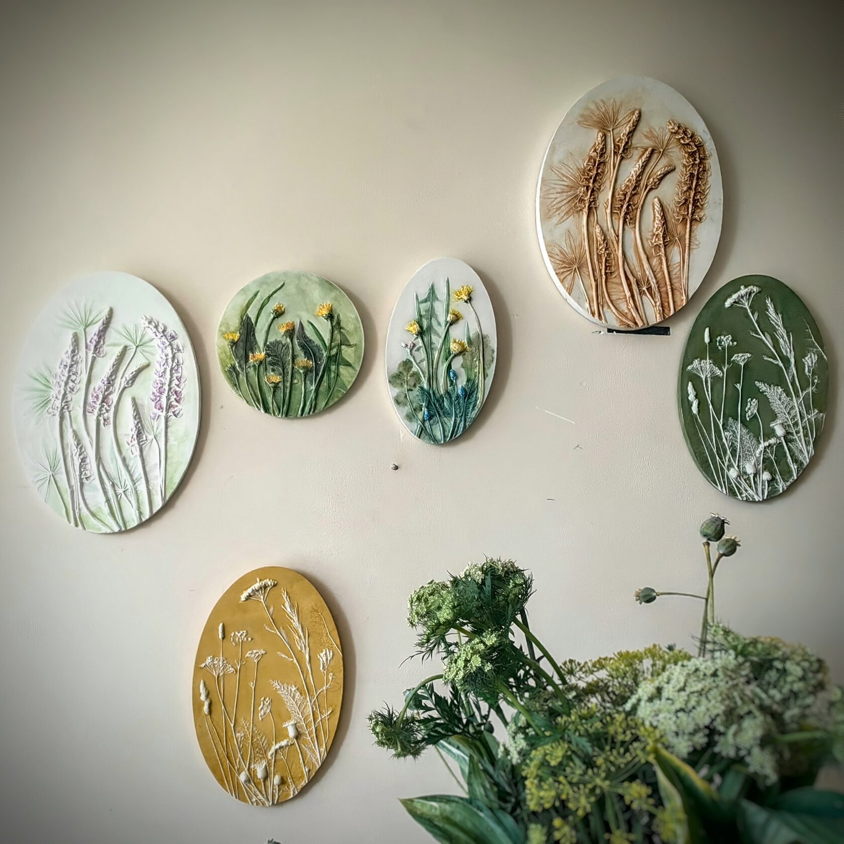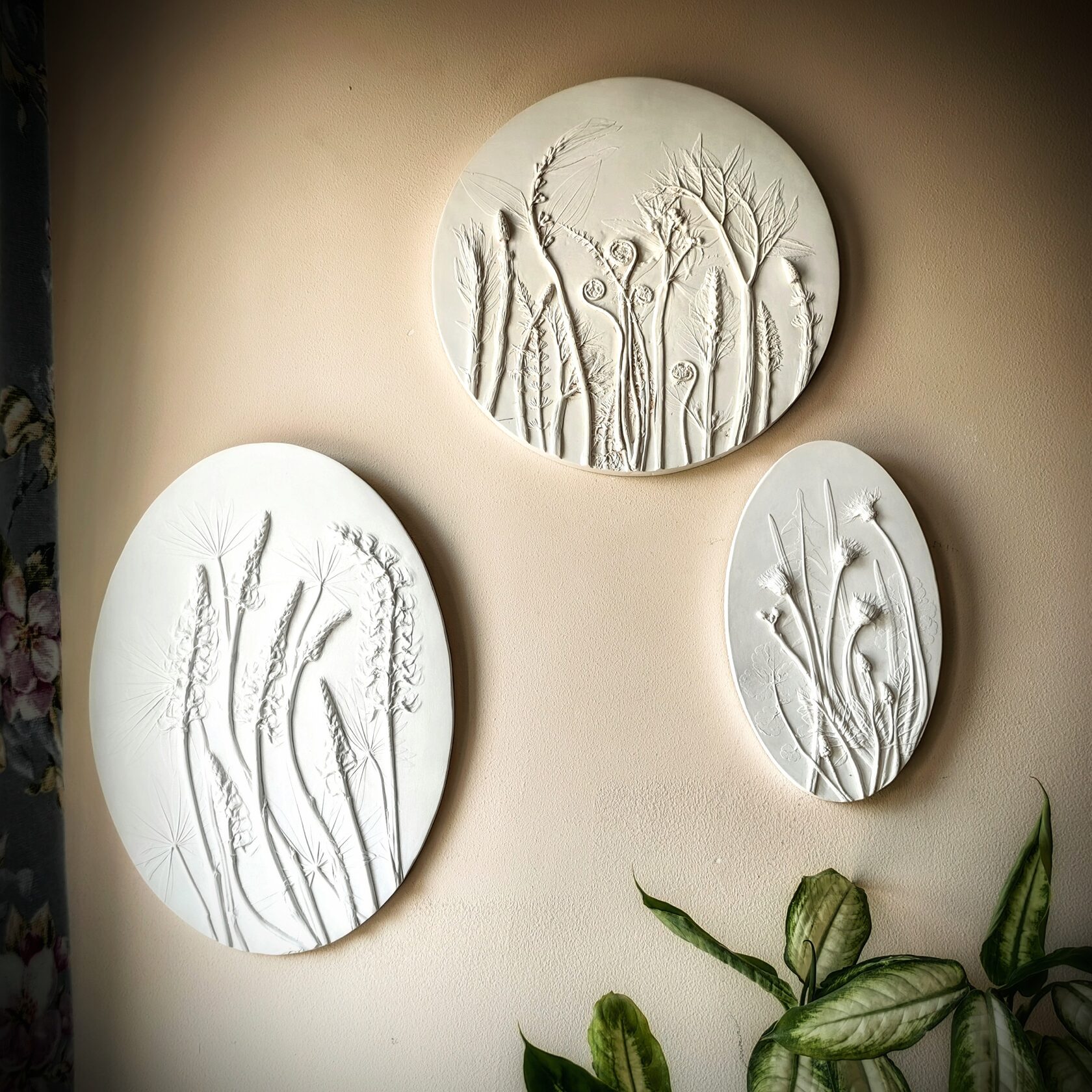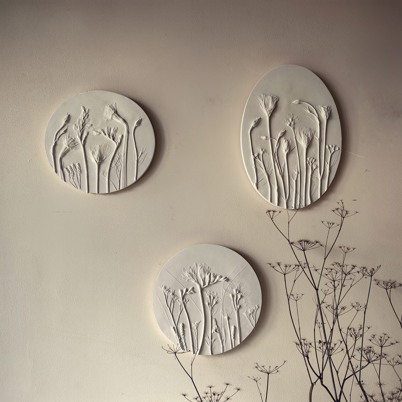 В работе мы используем живые цветы, натуральную цветную глину и высокопрочный гипс. Каждое изделие изготовлено с большой любовью к процессу и уважением к будущему обладателю панно.