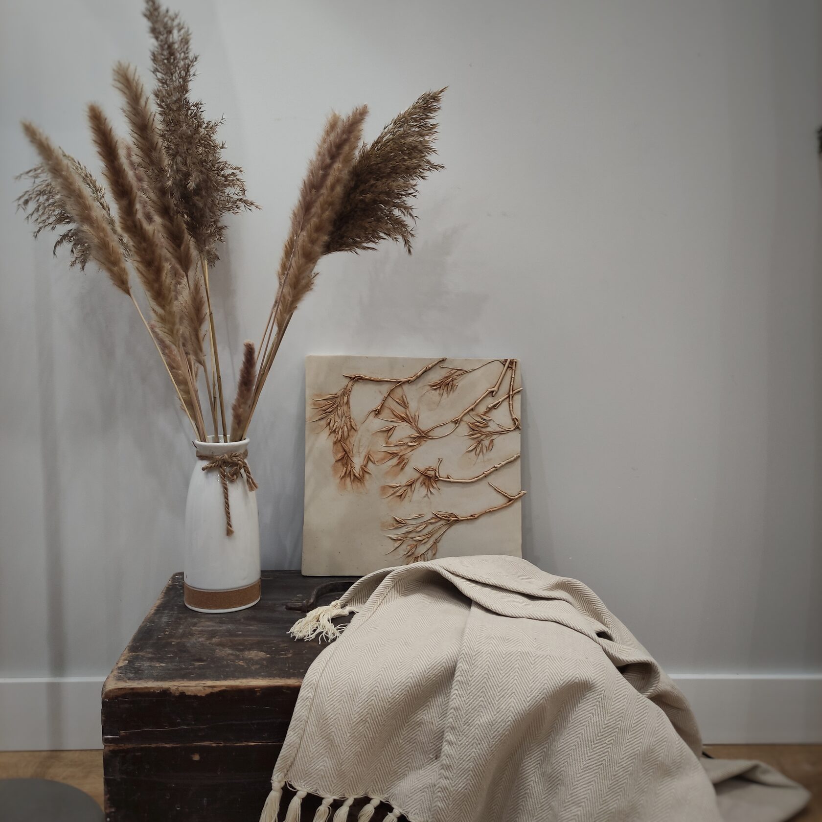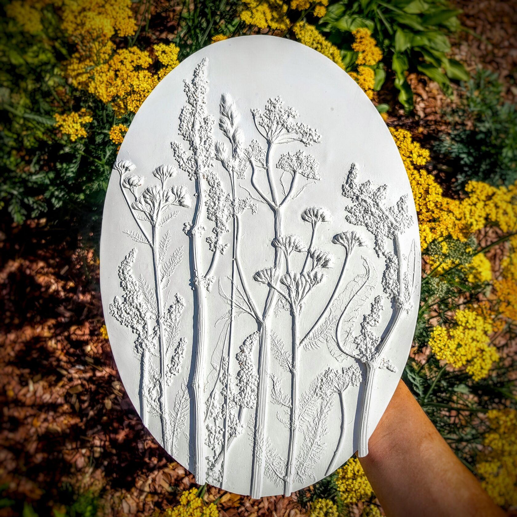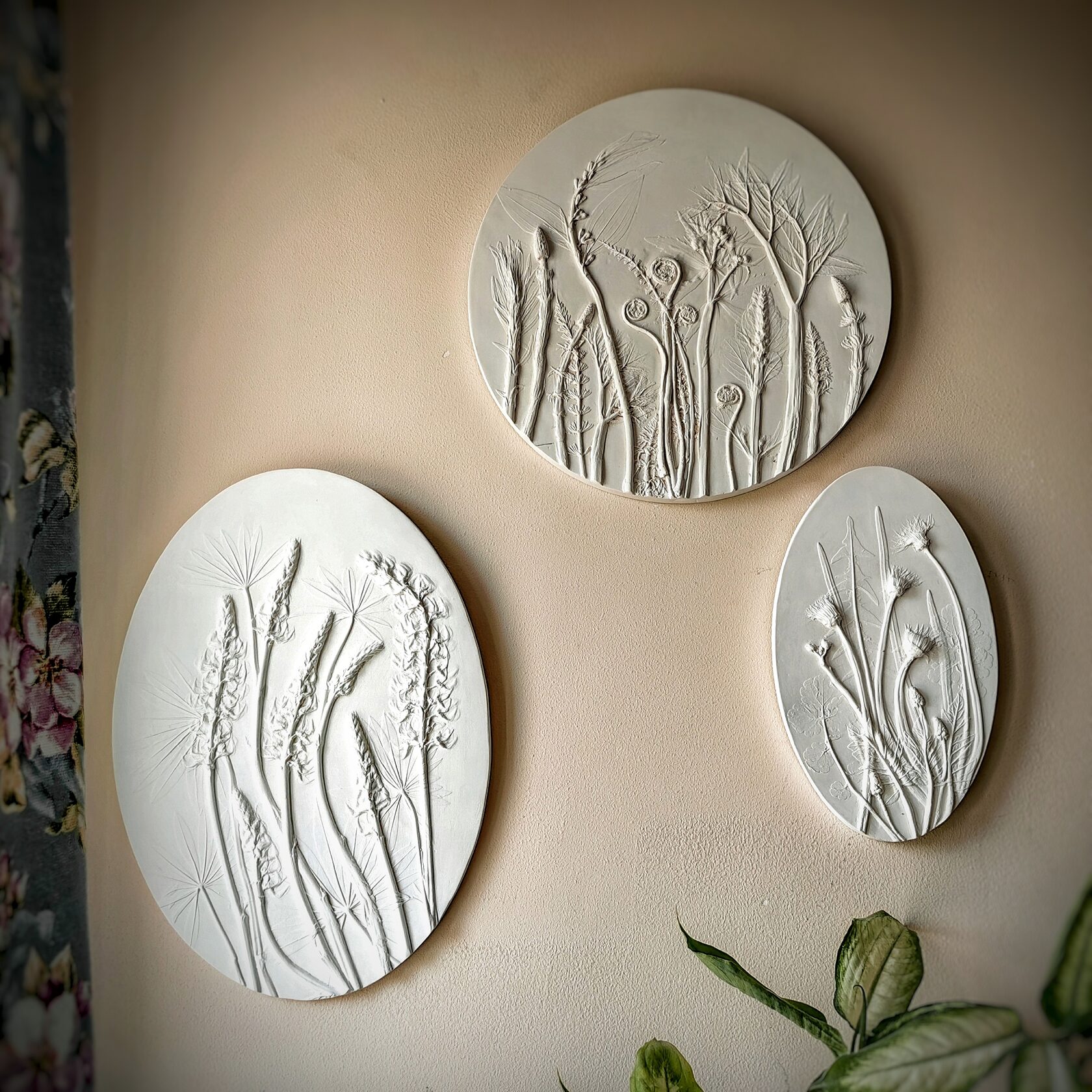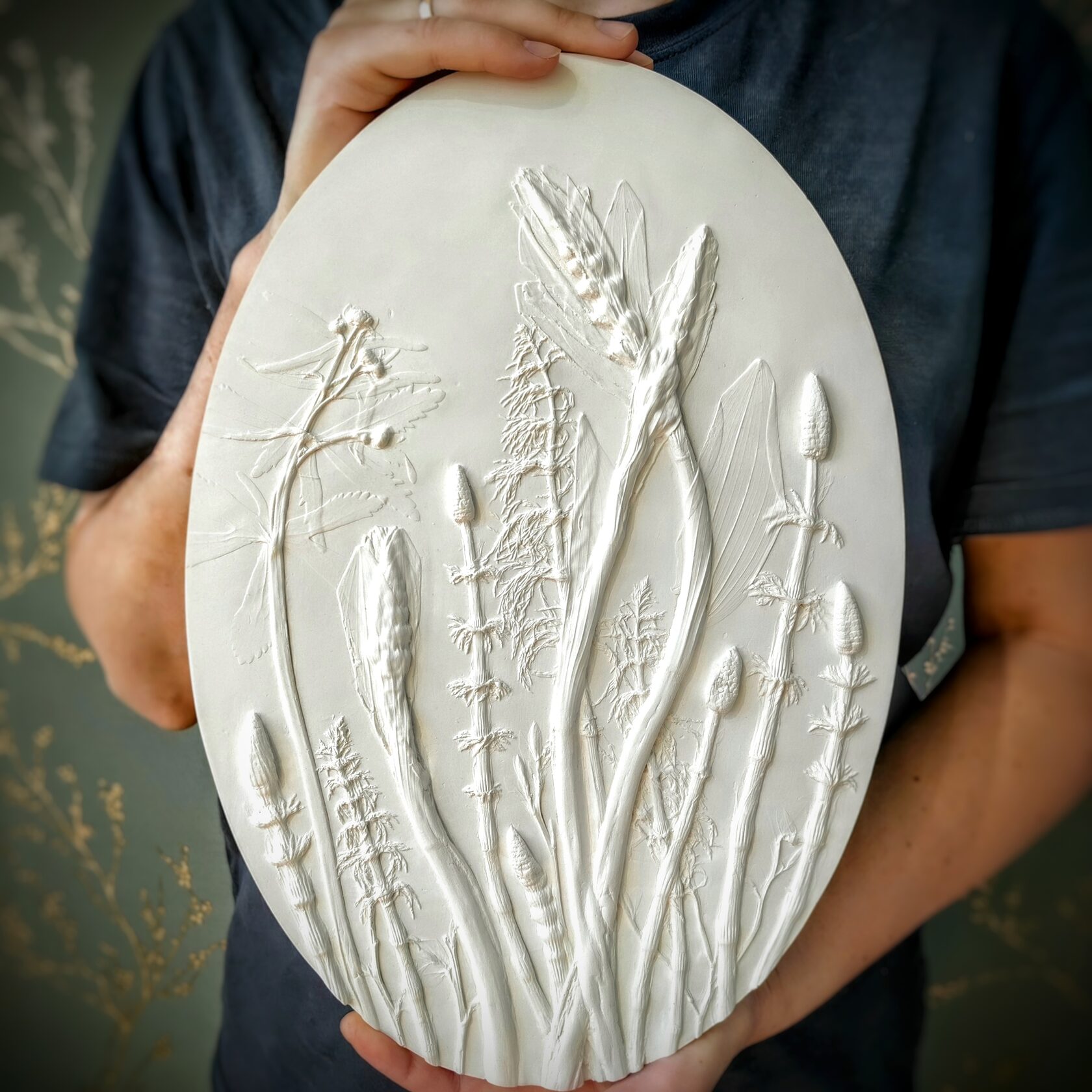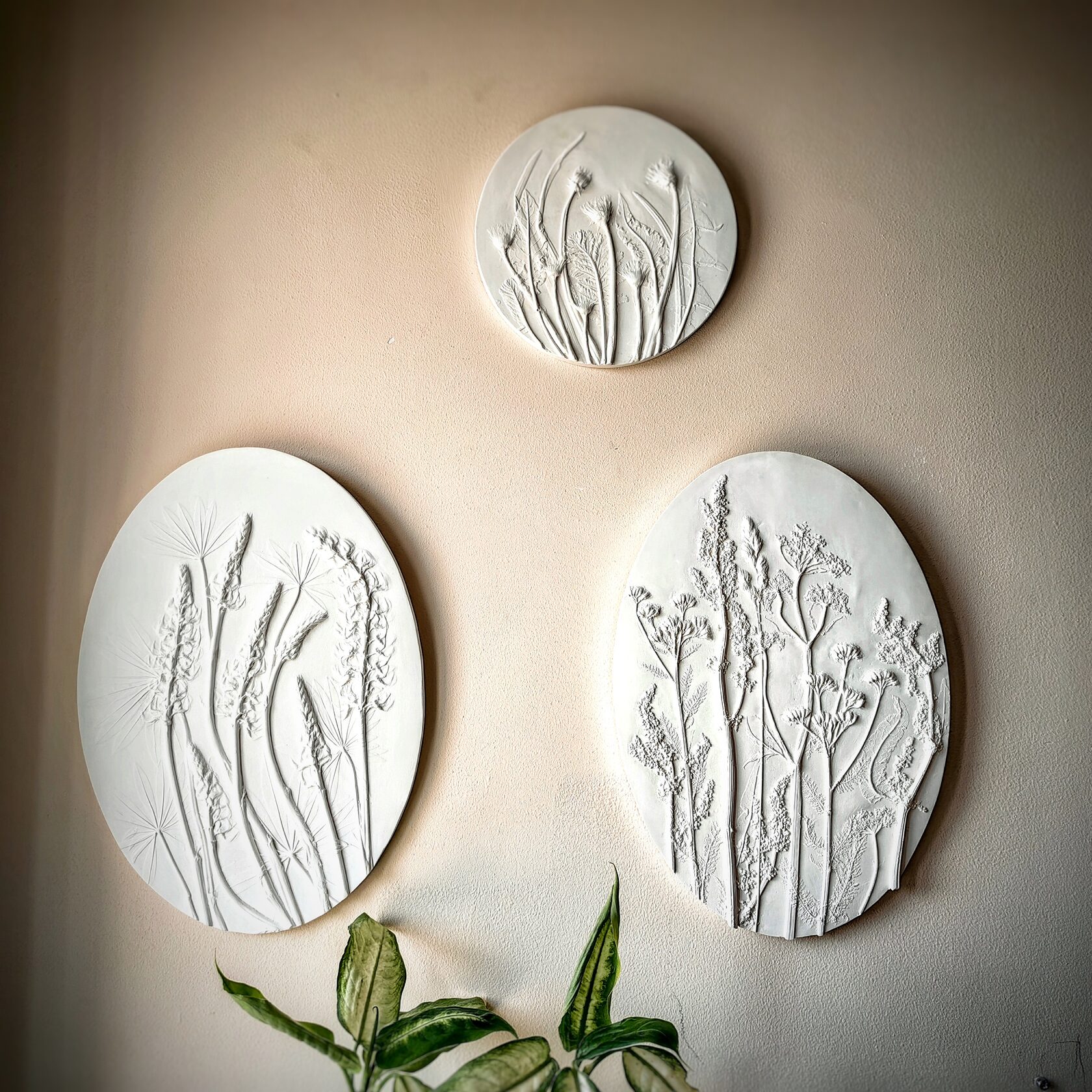 В работе мы используем живые цветы, натуральную цветную глину и высокопрочный гипс. Каждое изделие изготовлено с большой любовью к процессу и уважением к будущему обладателю панно.