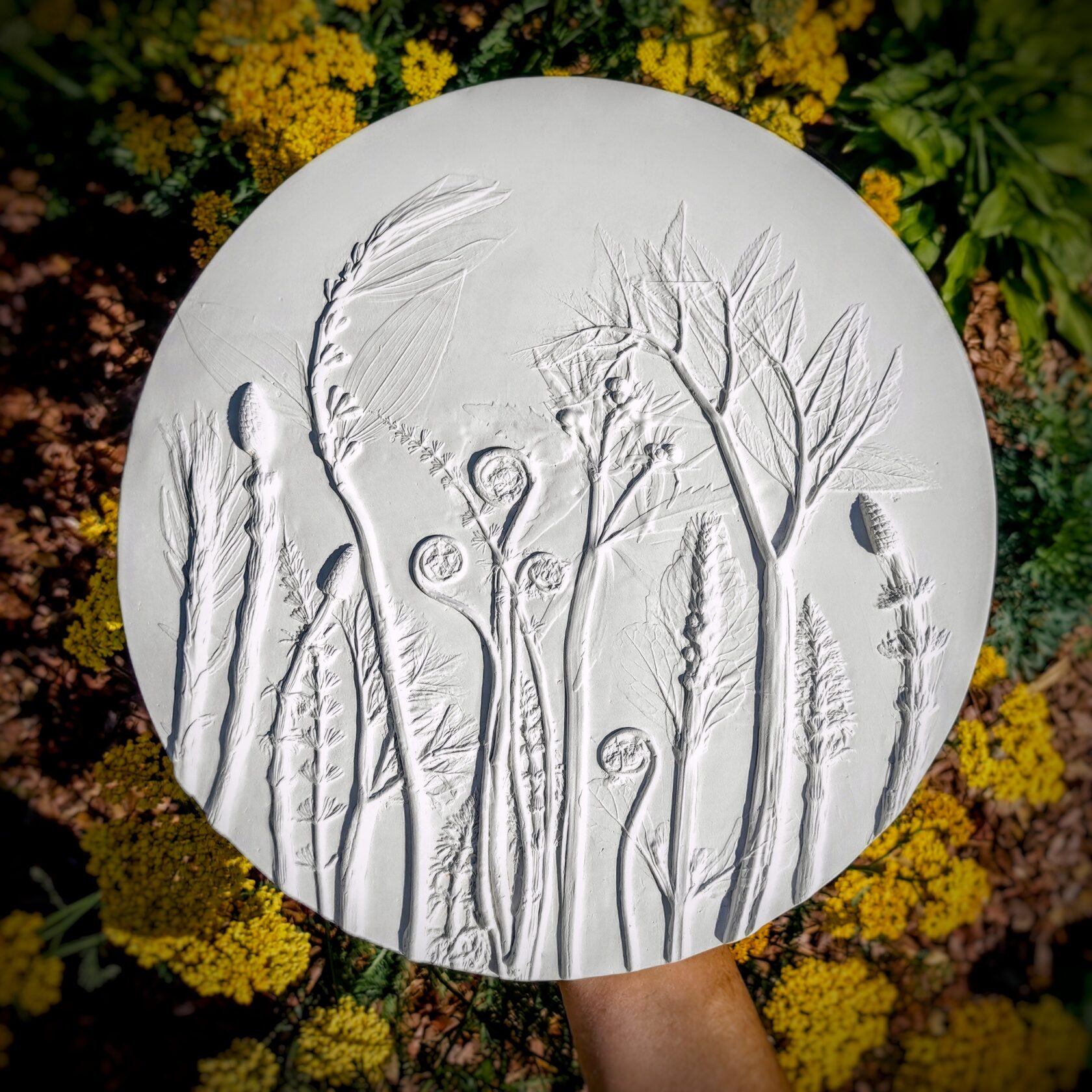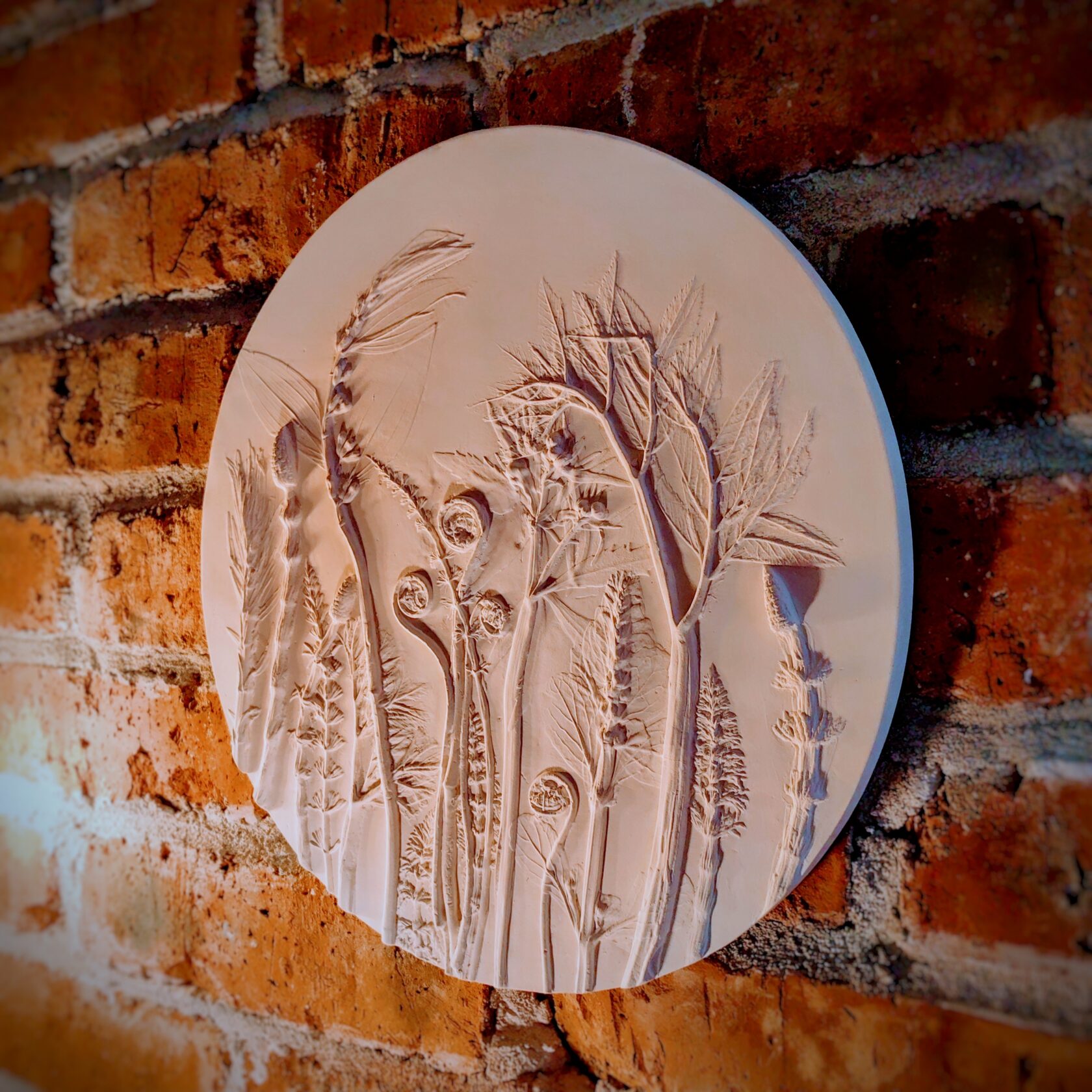 Одна из самых популярных работ. Панно среднего размера, диаметром 26 см, толщиной до 1 см без учета барельефного объема. Вес около 850 грамм. Лицевая сторона панно ничем не обработана. Тыльная сторона покрыта гидрофобным акриловым лаком. Панно можно подвесить на стену с помощью петель на тыльной стороне, либо поставить на подставку по вашему желанию. Панно можно тонировать и окрашивать красками: акрил, акварель, ангобы, лак. Перед работой с акрилом рекомендуем обработать панно грунтовкой. Барельеф допускается протирать влажной тканью.